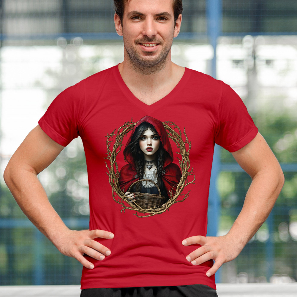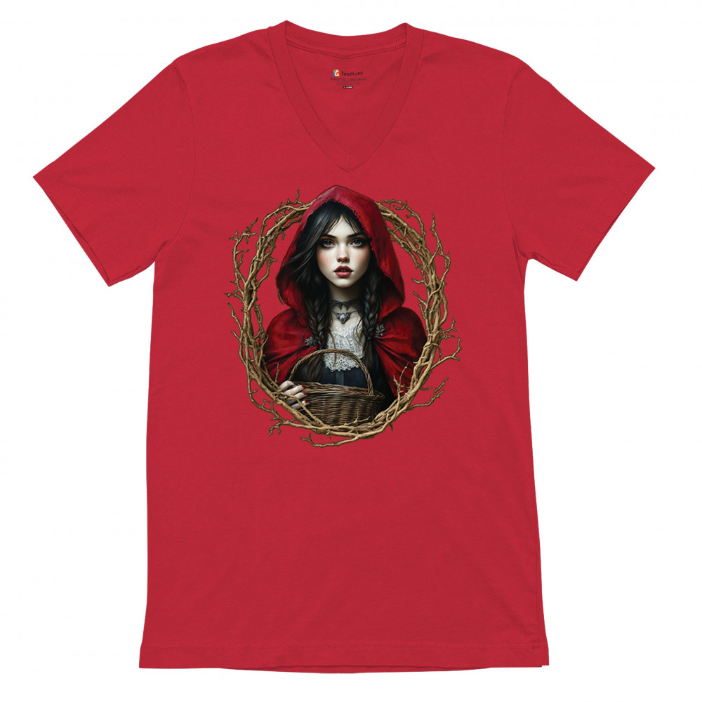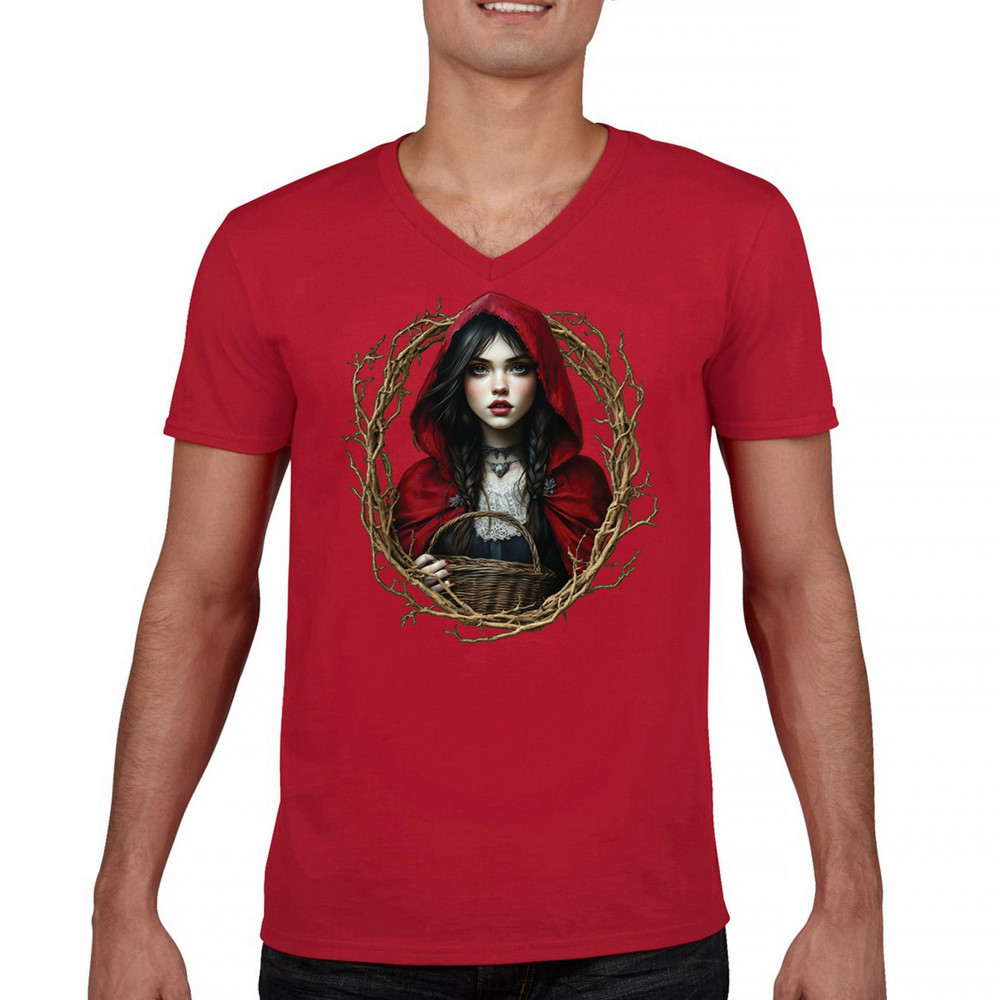 Step into a shadowy fairytale with this gothic design featuring a red-cloaked girl and twisted forest branches. Evoking themes from Red Riding Hood and folklore magic, it’s rich in fantasy, mystery, and dark aesthetic. Perfect for fantasy lovers, dark romantics, and storybook dreamers drawn to enchanted paths and eerie tales.