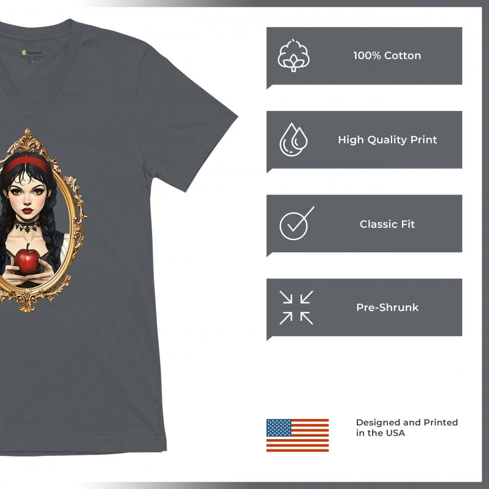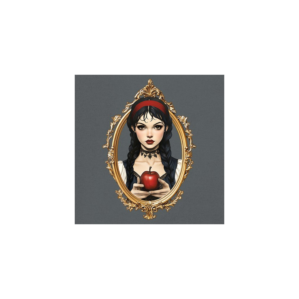 This enchanting design brings to life a gothic-inspired girl holding a red apple, encased in a regal vintage mirror frame. With elements pulled from Snow White, fairytales, and fantasy symbolism, it blends innocence and temptation with dark romanticism. Perfect for dreamers, collectors, and lovers of magical narratives and visual elegance.