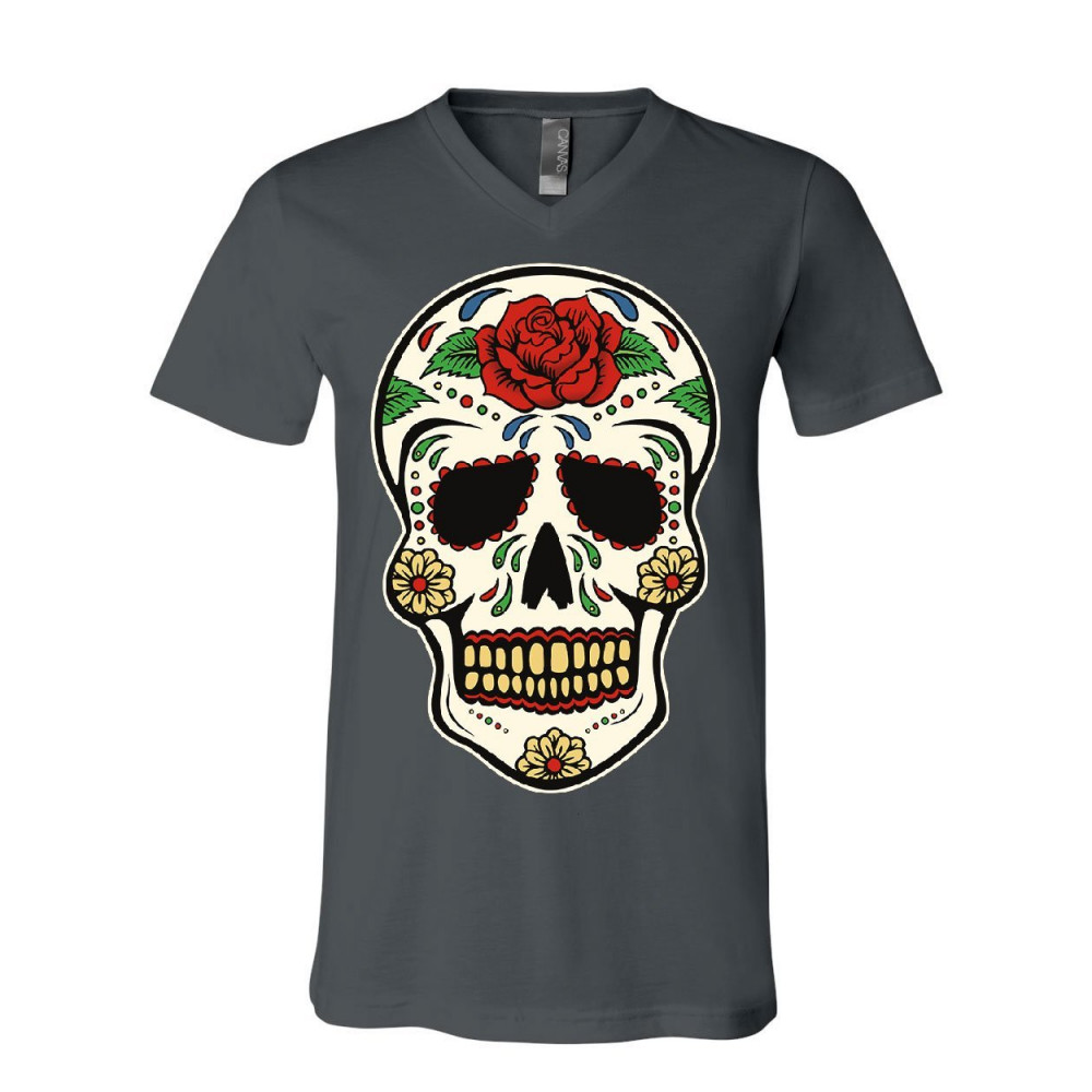 SUGAR SKULL CALAVERA DIA DE LOS MUERTOS sugar skull calavera v-neck t-shirt dia de los muertos day of the dead tee charcoal