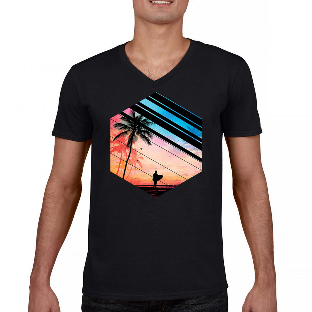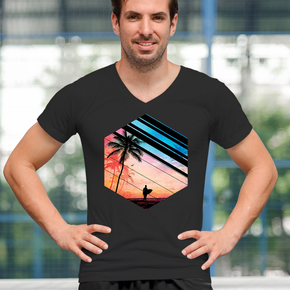 Catch the vibe of endless summer with our surf-inspired tee. Featuring silhouetted palms, warm gradients, and cool geometric shapes, it’s a visual journey from the urban grind to tropical tranquility. This tee is for the soul surfers and dreamers, made to be as enduring as the memories of your last wave. It's more than apparel—it’s a horizon of possibilities. Add this staple to your collection and let the good times roll.