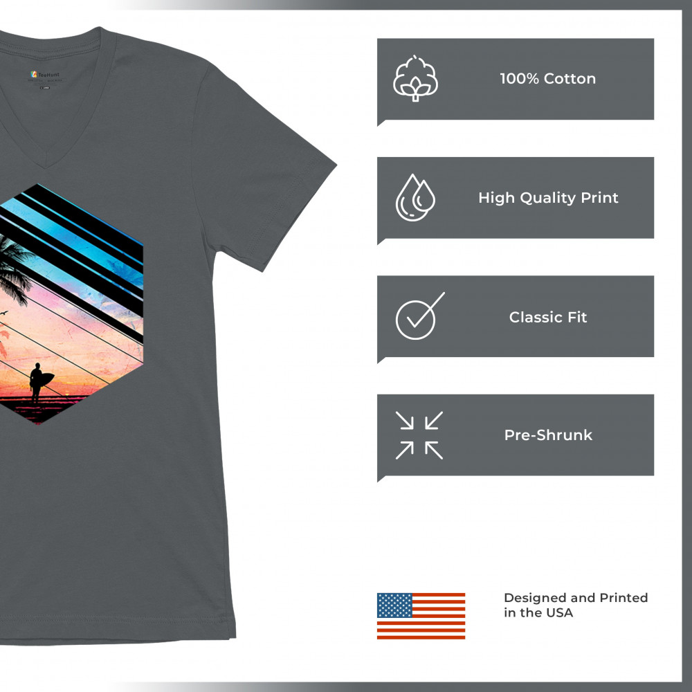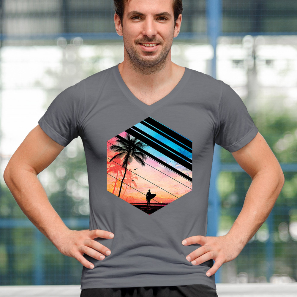 Catch the vibe of endless summer with our surf-inspired tee. Featuring silhouetted palms, warm gradients, and cool geometric shapes, it’s a visual journey from the urban grind to tropical tranquility. This tee is for the soul surfers and dreamers, made to be as enduring as the memories of your last wave. It's more than apparel—it’s a horizon of possibilities. Add this staple to your collection and let the good times roll.