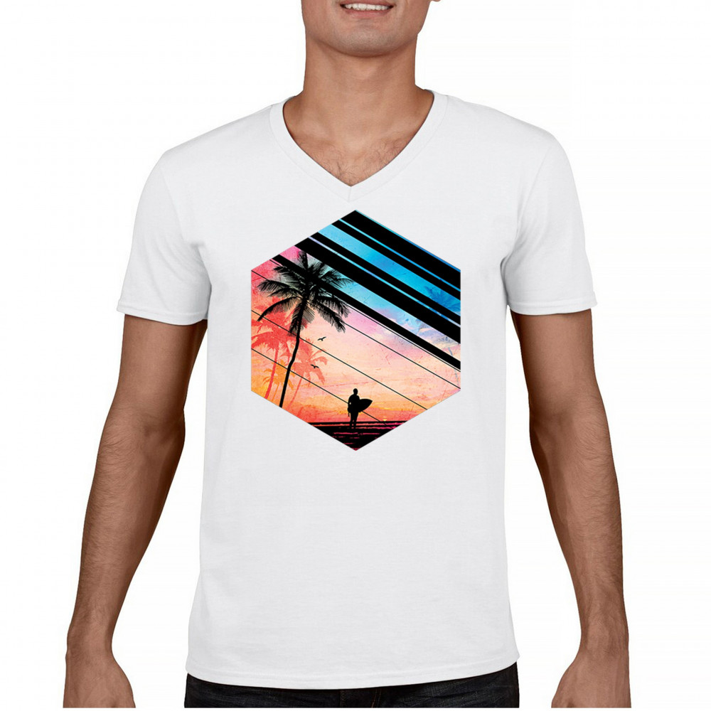 Catch the vibe of endless summer with our surf-inspired tee. Featuring silhouetted palms, warm gradients, and cool geometric shapes, it’s a visual journey from the urban grind to tropical tranquility. This tee is for the soul surfers and dreamers, made to be as enduring as the memories of your last wave. It's more than apparel—it’s a horizon of possibilities. Add this staple to your collection and let the good times roll.