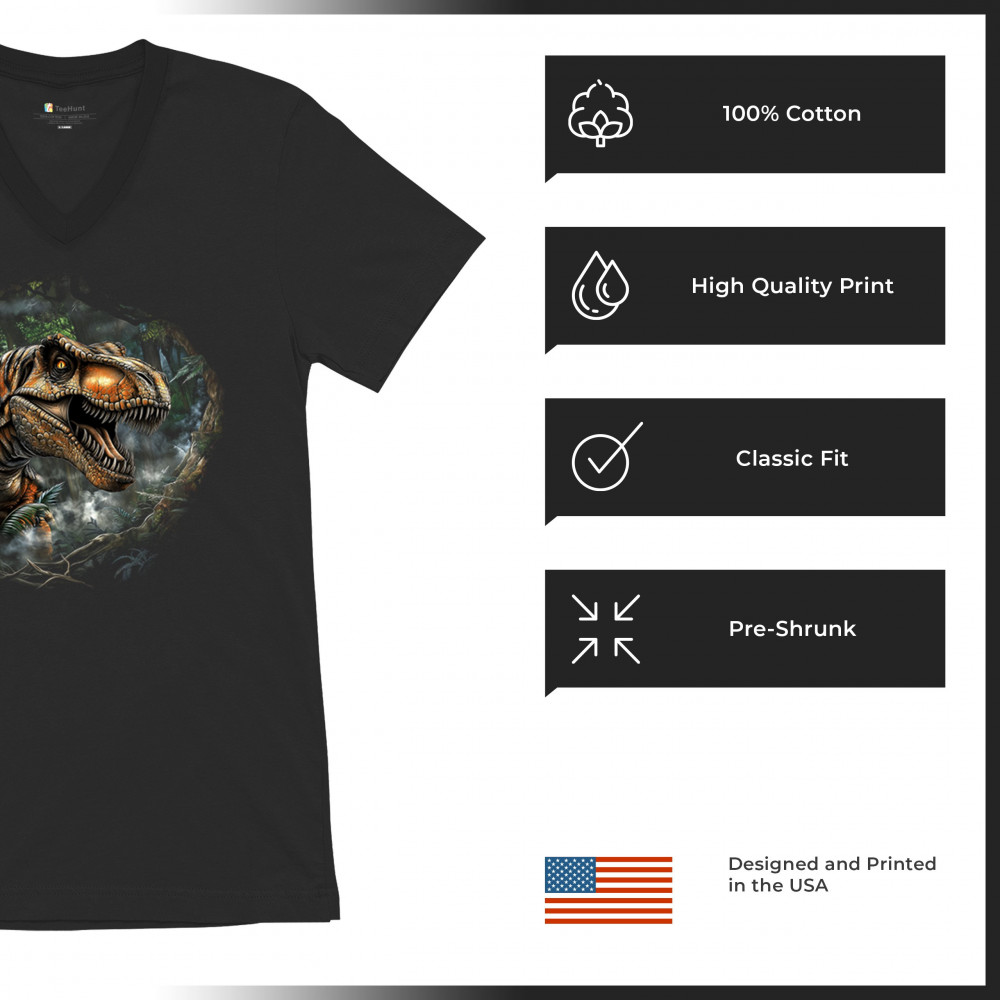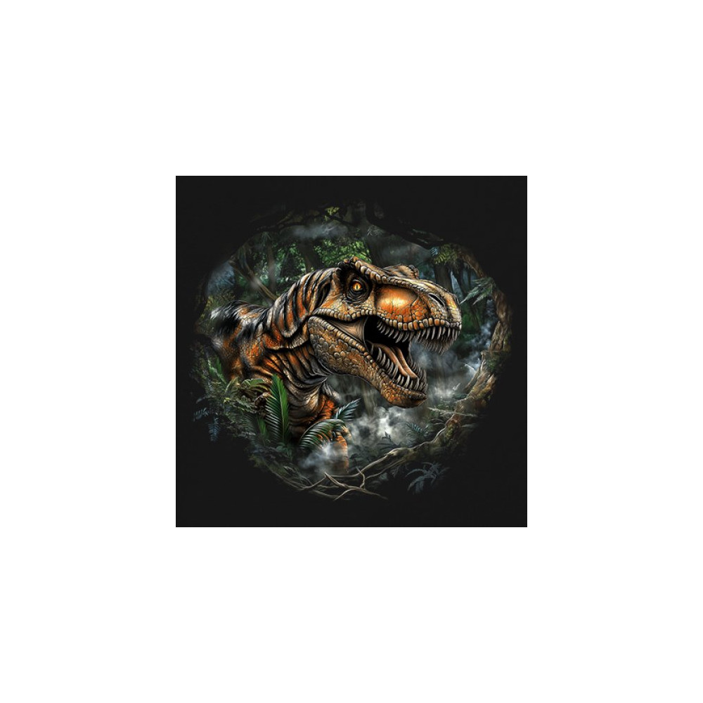 Step into the Jurassic jungle with this electrifying t rex design. With sharp teeth, rugged scales, and mist swirling through lush greenery, this tyrannosaurus roars to life. Perfect for dinosaur fans, fossil lovers, and nature explorers. Wear it to museums, theme parks, or wherever ancient beasts still rule the imagination.