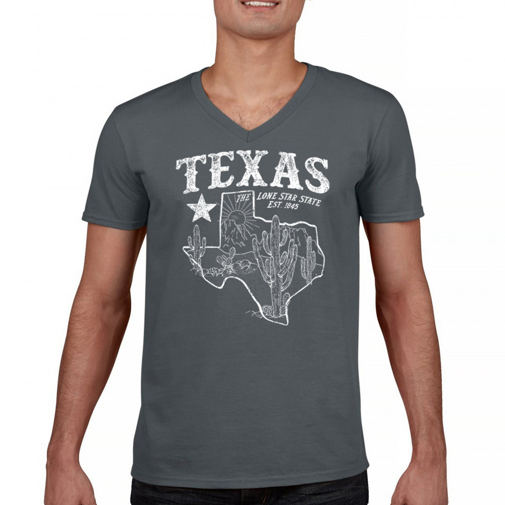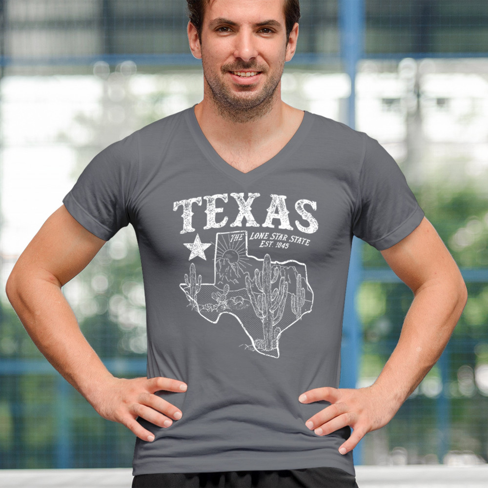 Celebrate the Lone Star State with this rugged Texas map design featuring cactus, mountains, and bold state pride text. A rustic southwestern tribute to the state’s heritage, established in 1845, it’s the perfect look for rodeos, country festivals, and lovers of the Texas desert lifestyle and scenery.