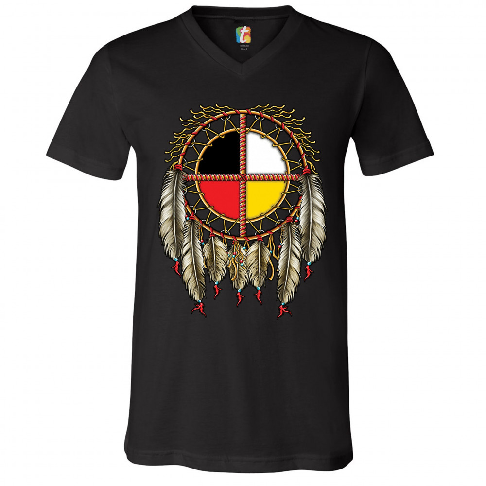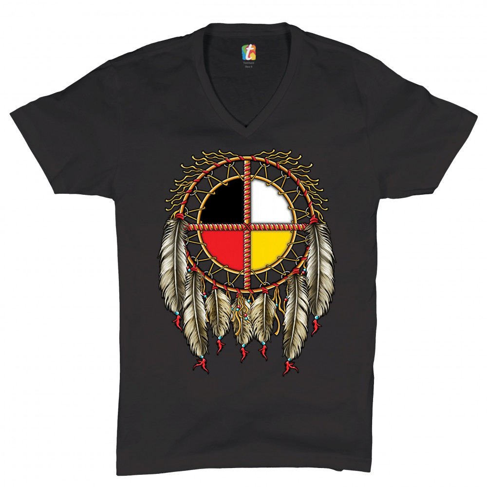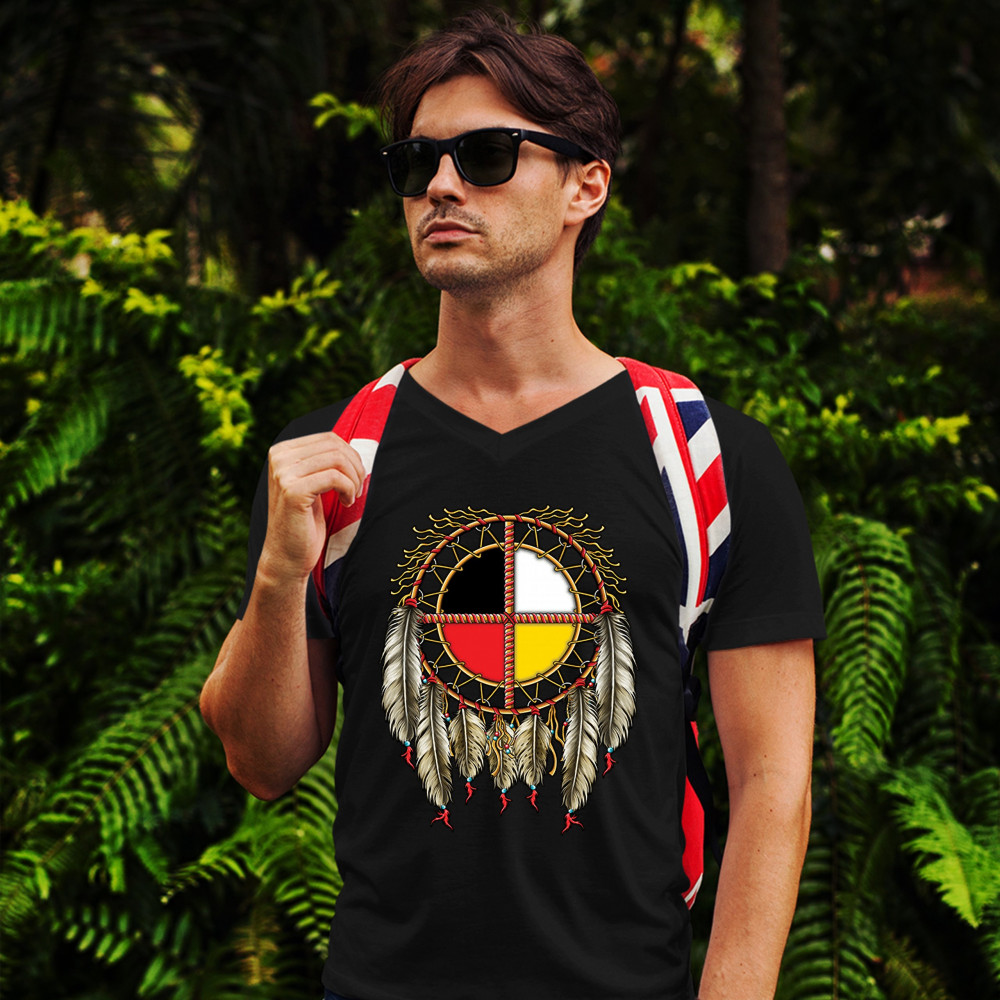 THE MEDICINE WHEEL DREAMCATCHER v-neck t-shirt native american symbol tee black