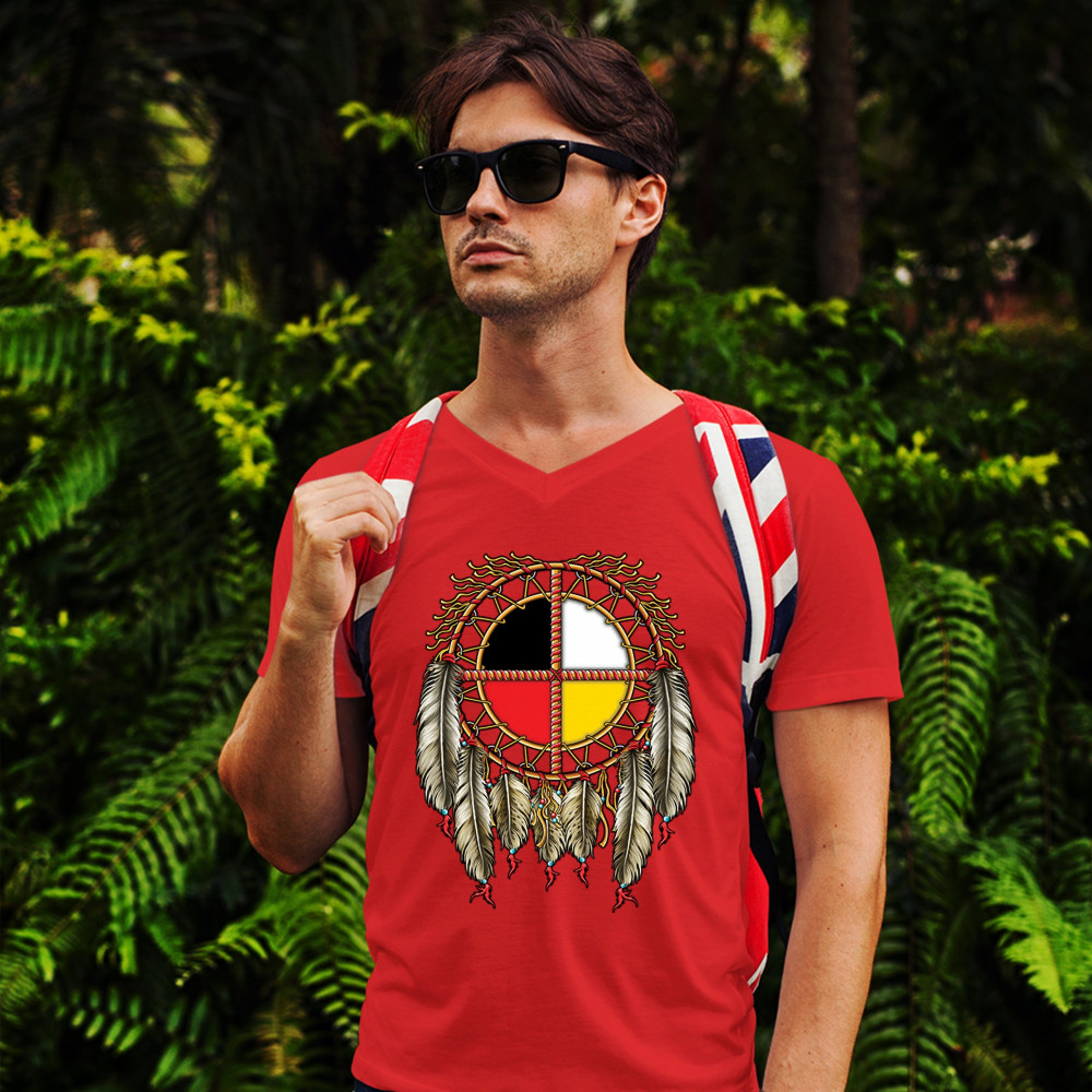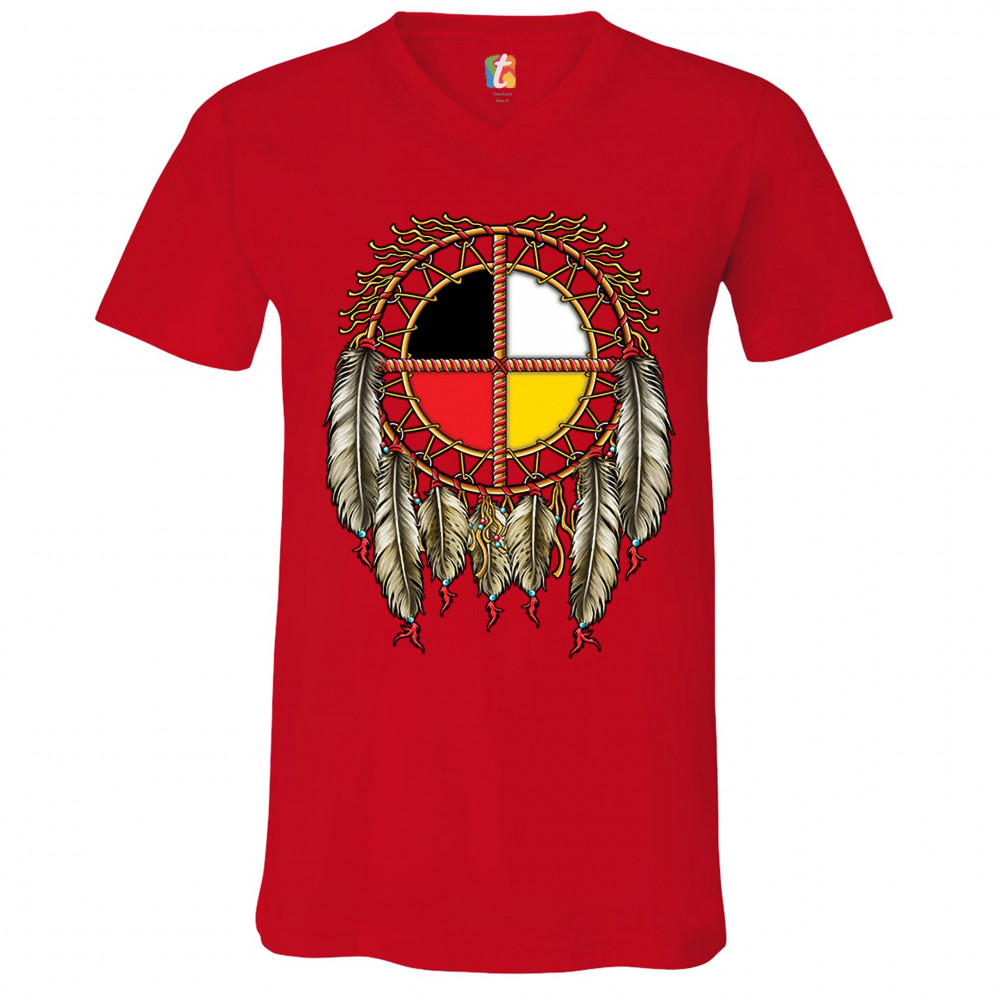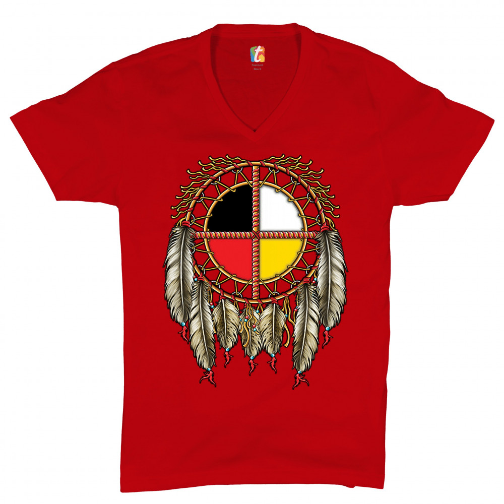 THE MEDICINE WHEEL DREAMCATCHER v-neck t-shirt native american symbol tee red