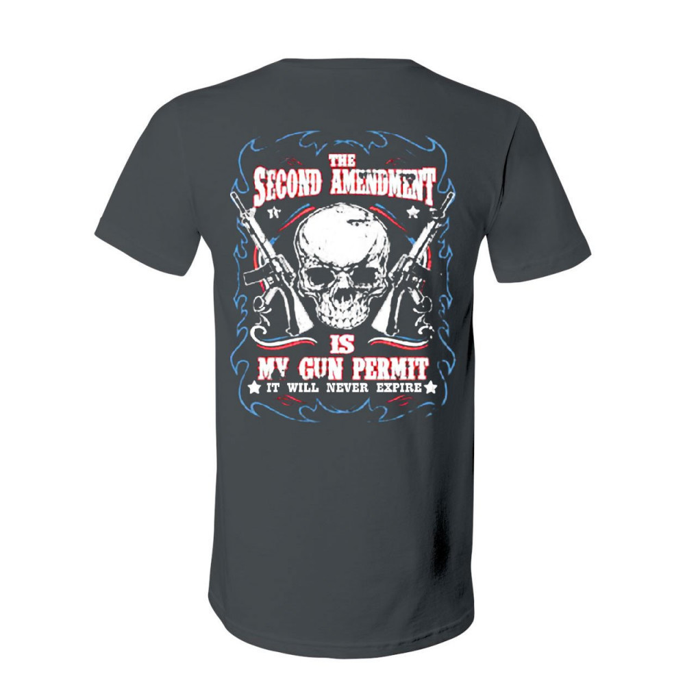2ND AMENDMENT IS MY GUN PERMIT v-neck t-shirt gun rights tee charcoal