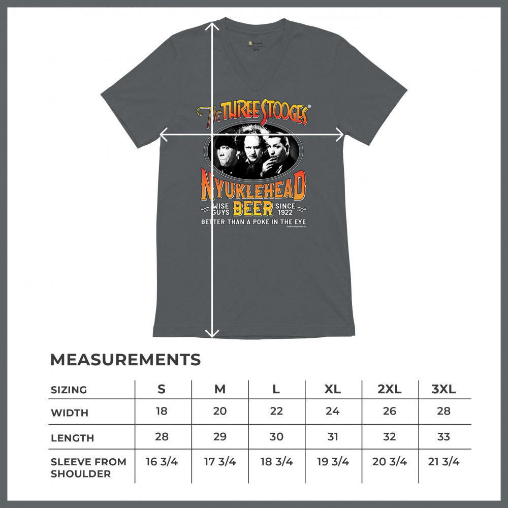 Celebrate the kings of comedy with our exclusive Three Stooges Nyuklehead Beer shirt. Featuring the legendary faces of Moe, Larry, and Curly, this tee is a tribute to the humor that has been tickling funny bones since 1922. Printed with "Wise Guys Beer," it's a playful nod to those who love a good laugh along with their brew. Whether you're a long-time Stooges aficionado or discovering their antics for the first time, this shirt is a conversation starter for any casual outing or Stooges-themed event.