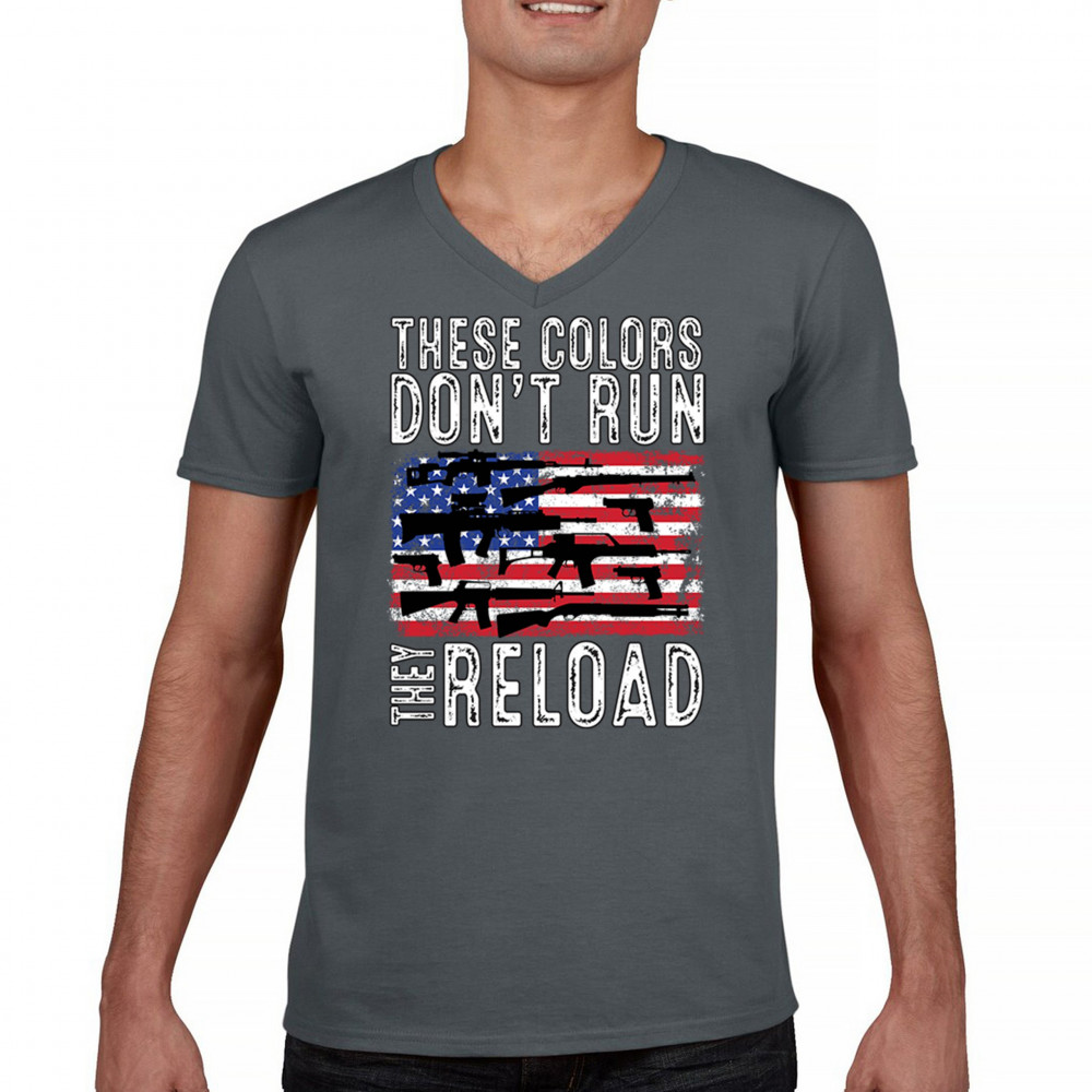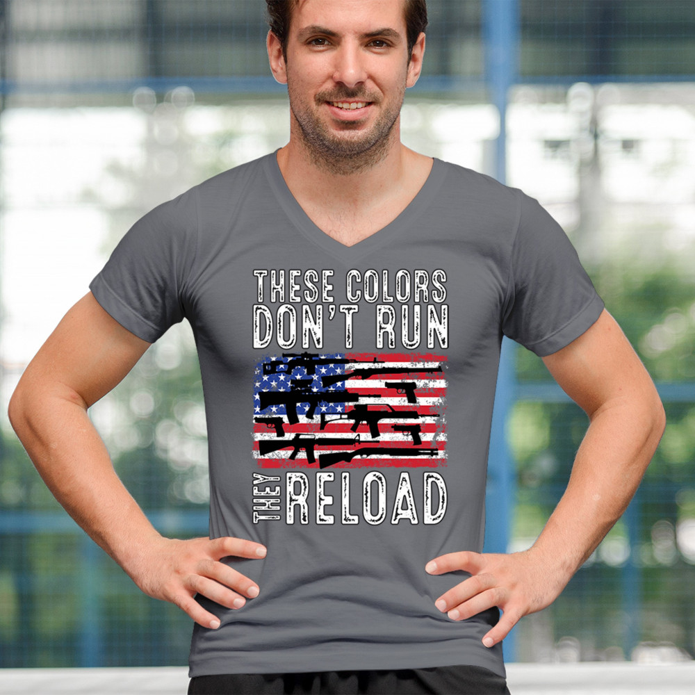 Explore the embodiment of patriotism with our 'These Colors Don't Run, They Reload' tee. A bold statement for those who honor freedom and resilience.