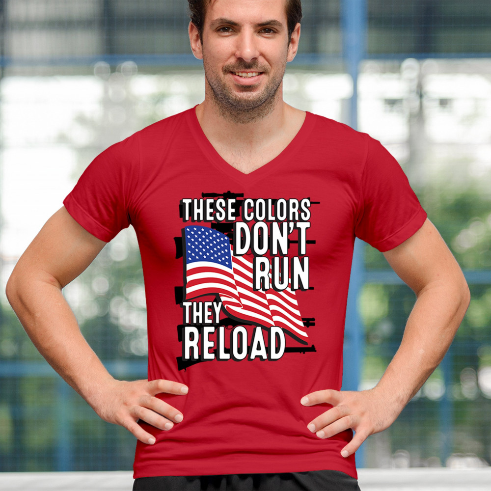 Discover the tee that boldly proclaims American resilience and liberty: 'These Colors Don't Run, They Reload'—a must-have for patriots and veterans.
