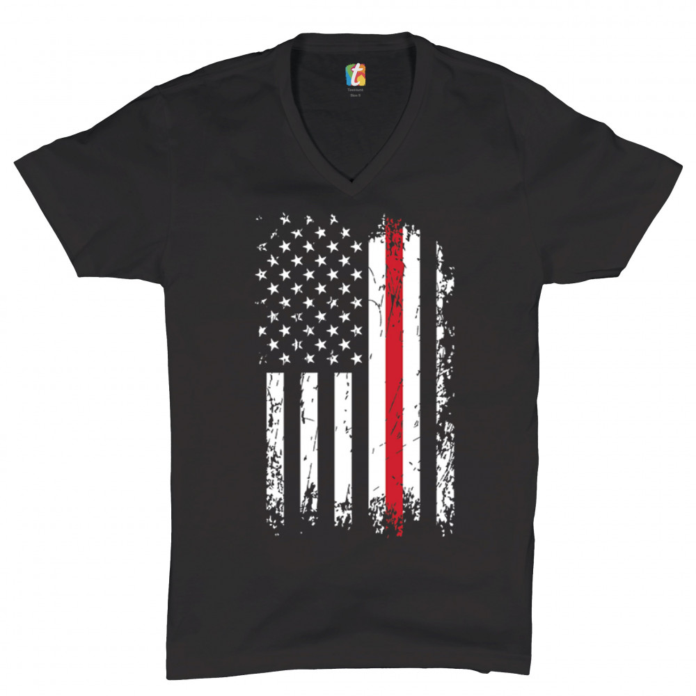 THIN RED LINE v-neck t-shirt american flag firefighter fire department tee black