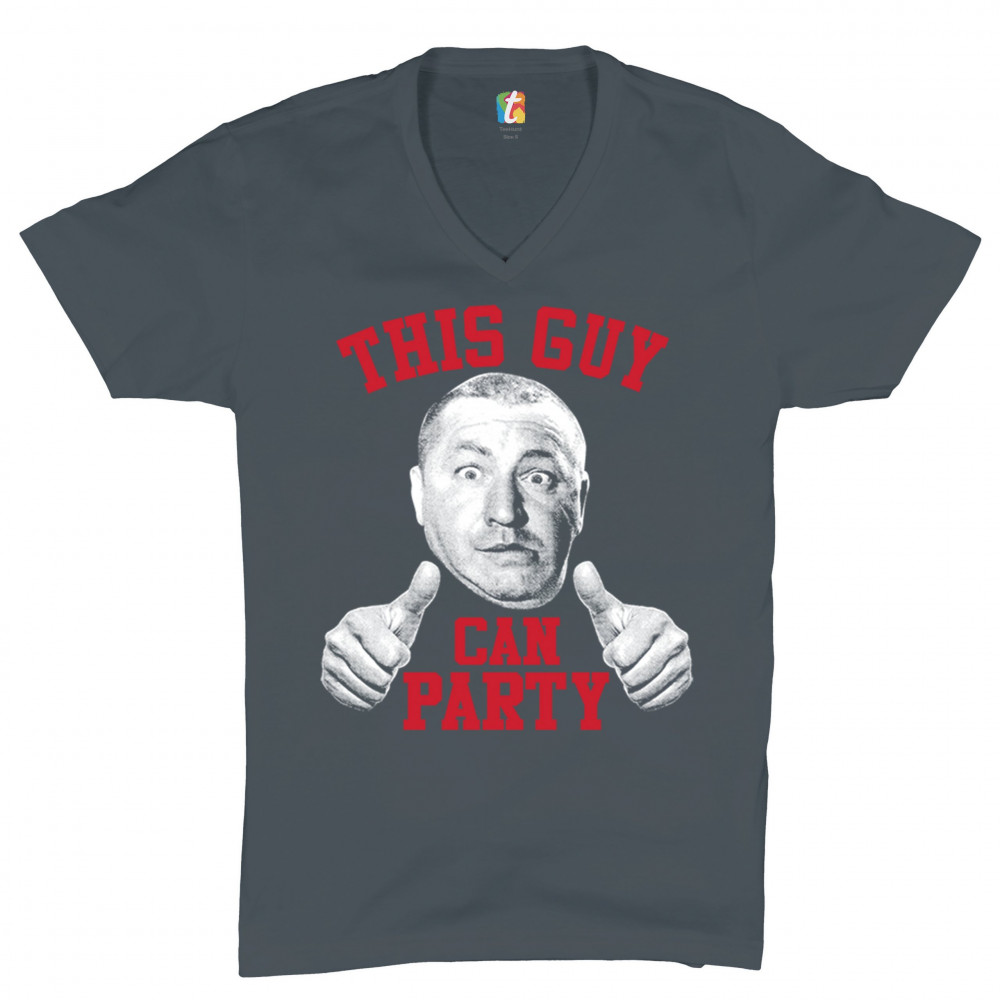 THIS GUY CAN PARTY v-neck t-shirt curly howard the three stooges tee charcoal