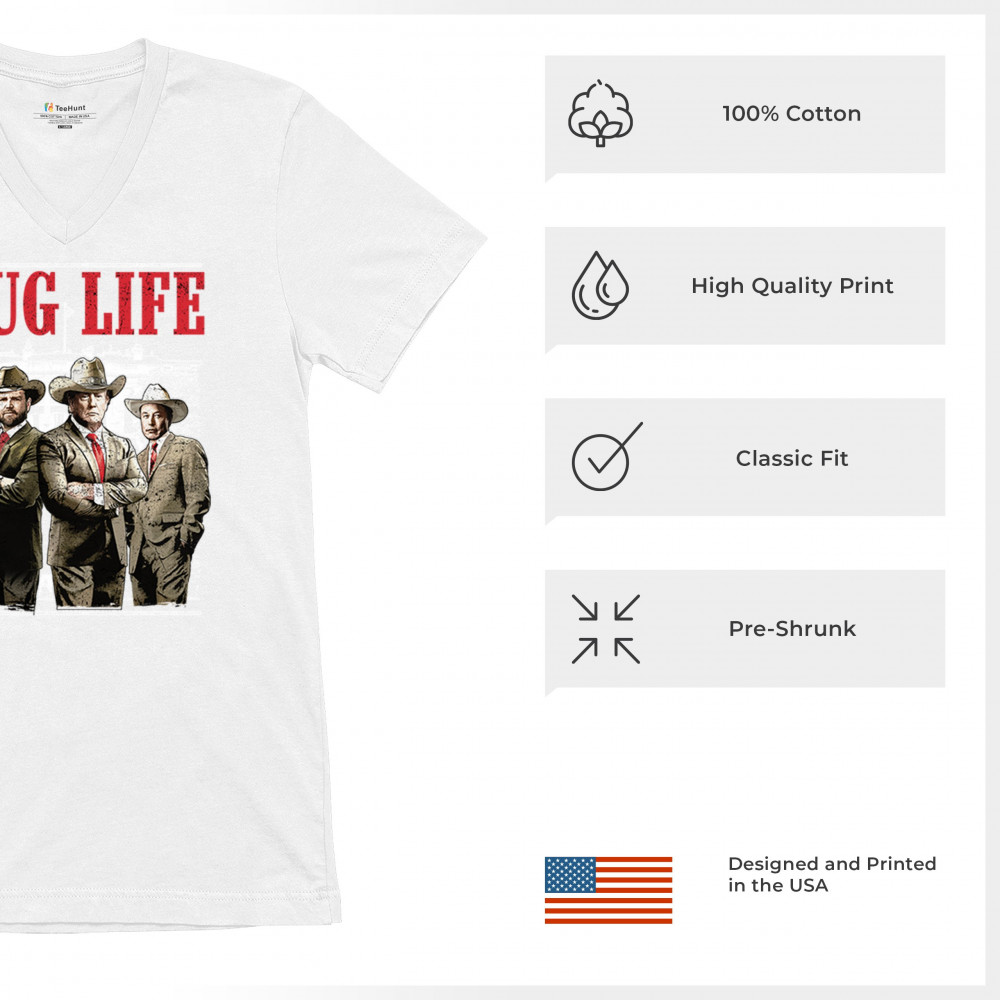 Make a statement with the Thug Life T-shirt, a must-have for every Republican and Trump supporter who stands for America First. Designed for those who believe in We The People Have Spoken, this shirt is perfect for rallies, events, or everyday wear. Featuring bold imagery and high-quality materials, it's a tribute to conservative values, the Red Wave, and the party of common sense. Get yours today and show your patriotic spirit.