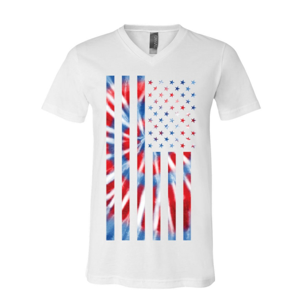 TIE-DYE AMERICAN FLAG v-neck t-shirt 4th of july stars and stripes tee white