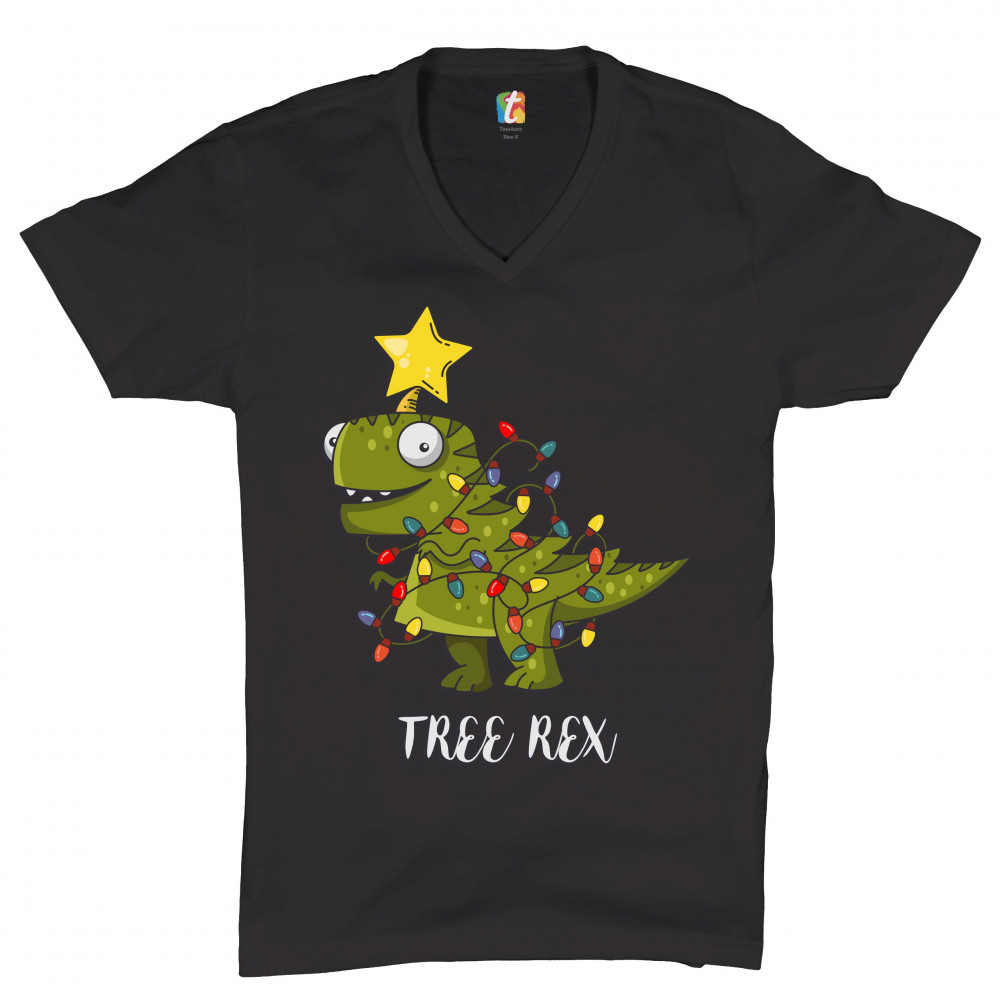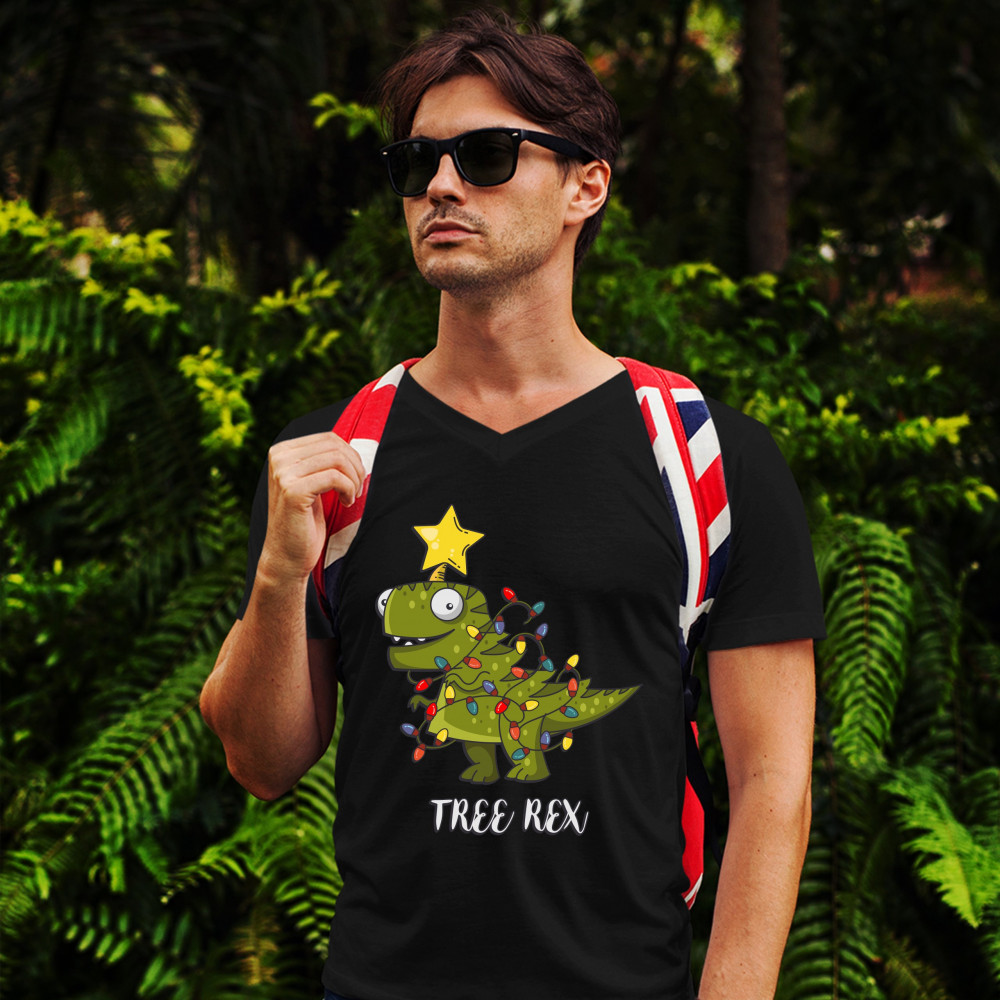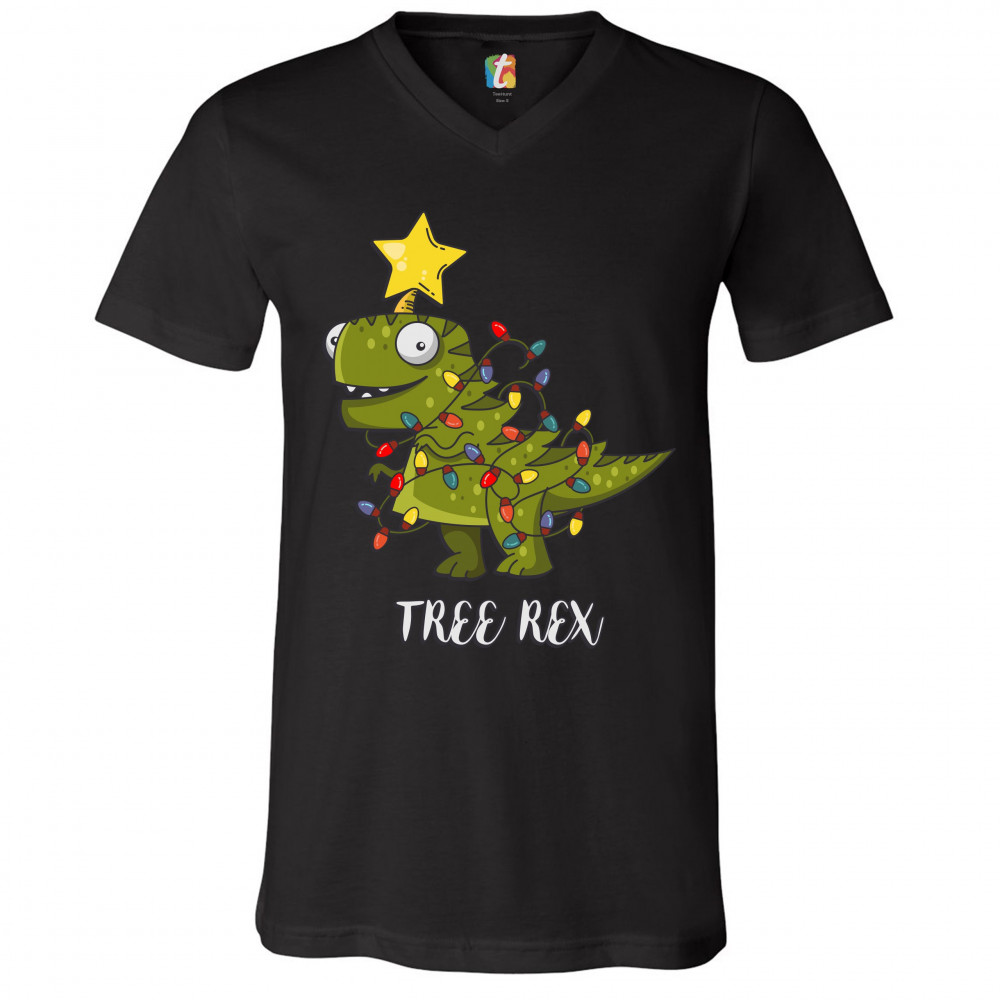TREE REX v-neck t-shirt funny tyronnasaurus rex christmas tree dinosaur tee black