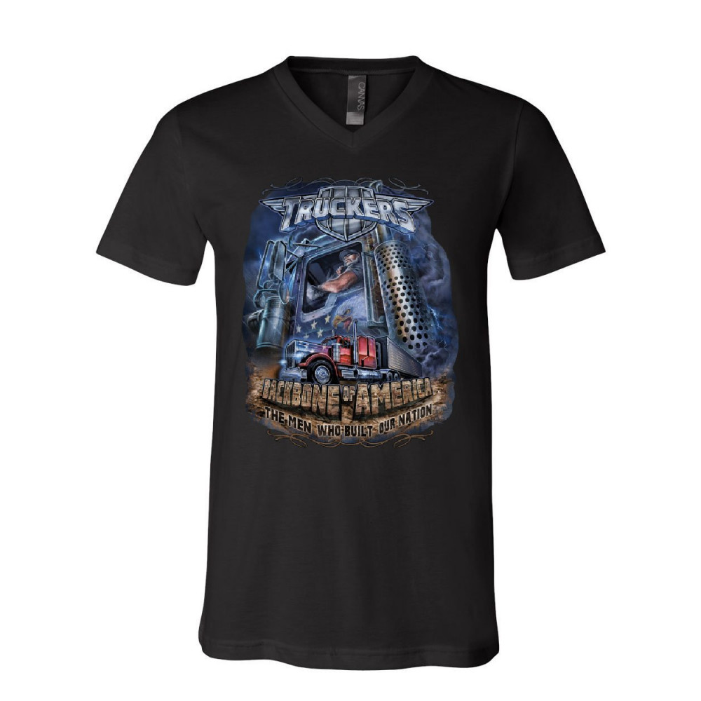 TRUCKERS - BACKBONE OF AMERICA truckers backbone of america v-neck t-shirt truck driver hauler diesel tee black