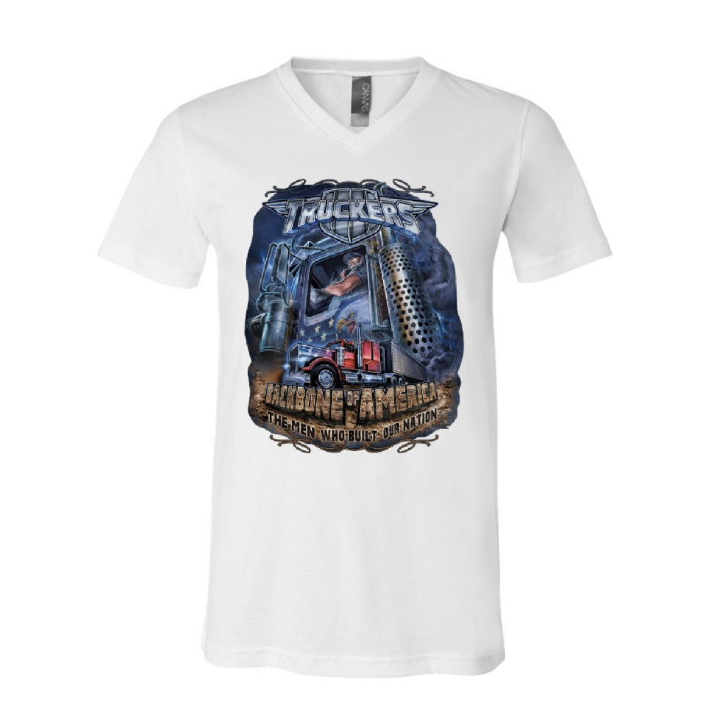 TRUCKERS - BACKBONE OF AMERICA truckers backbone of america v-neck t-shirt truck driver hauler diesel tee white