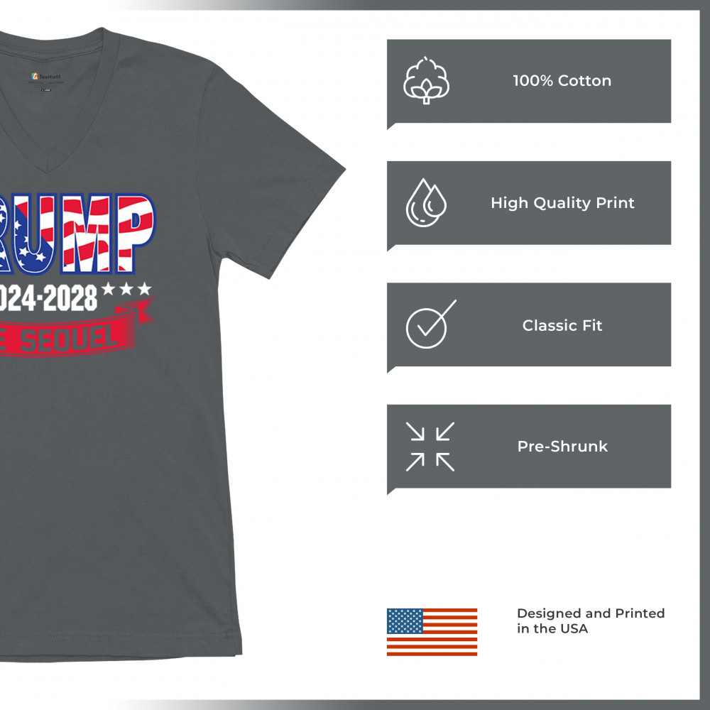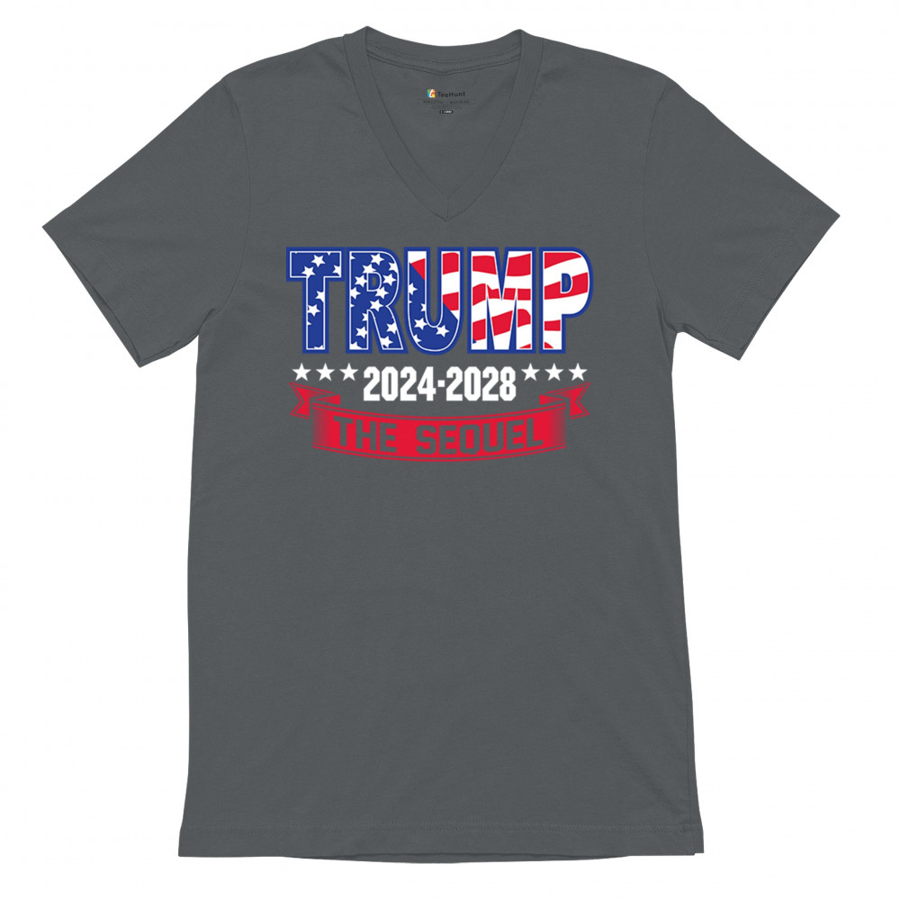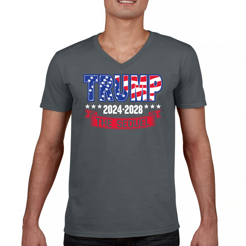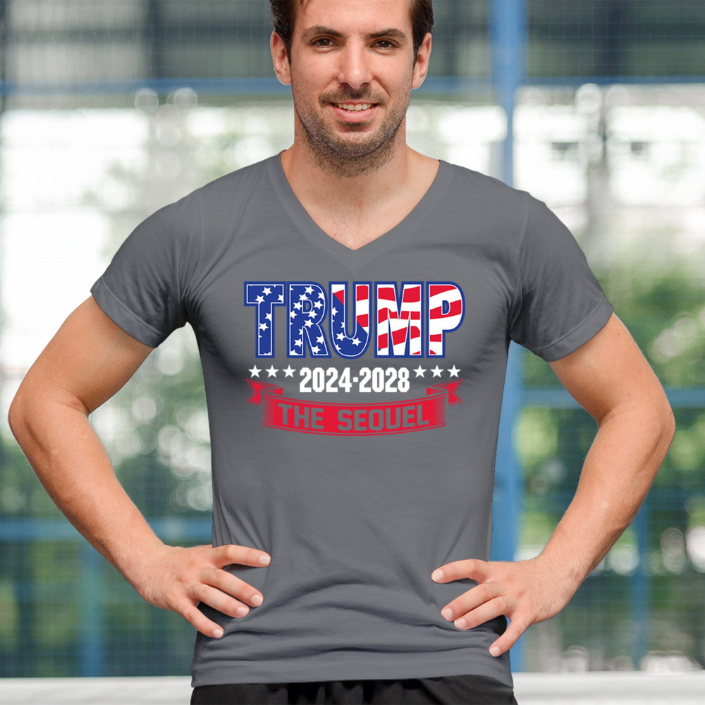 Stand with Trump for 2024-2028 in "The Sequel" design, celebrating America First, conservative values, and 4 more years of patriotic vision.