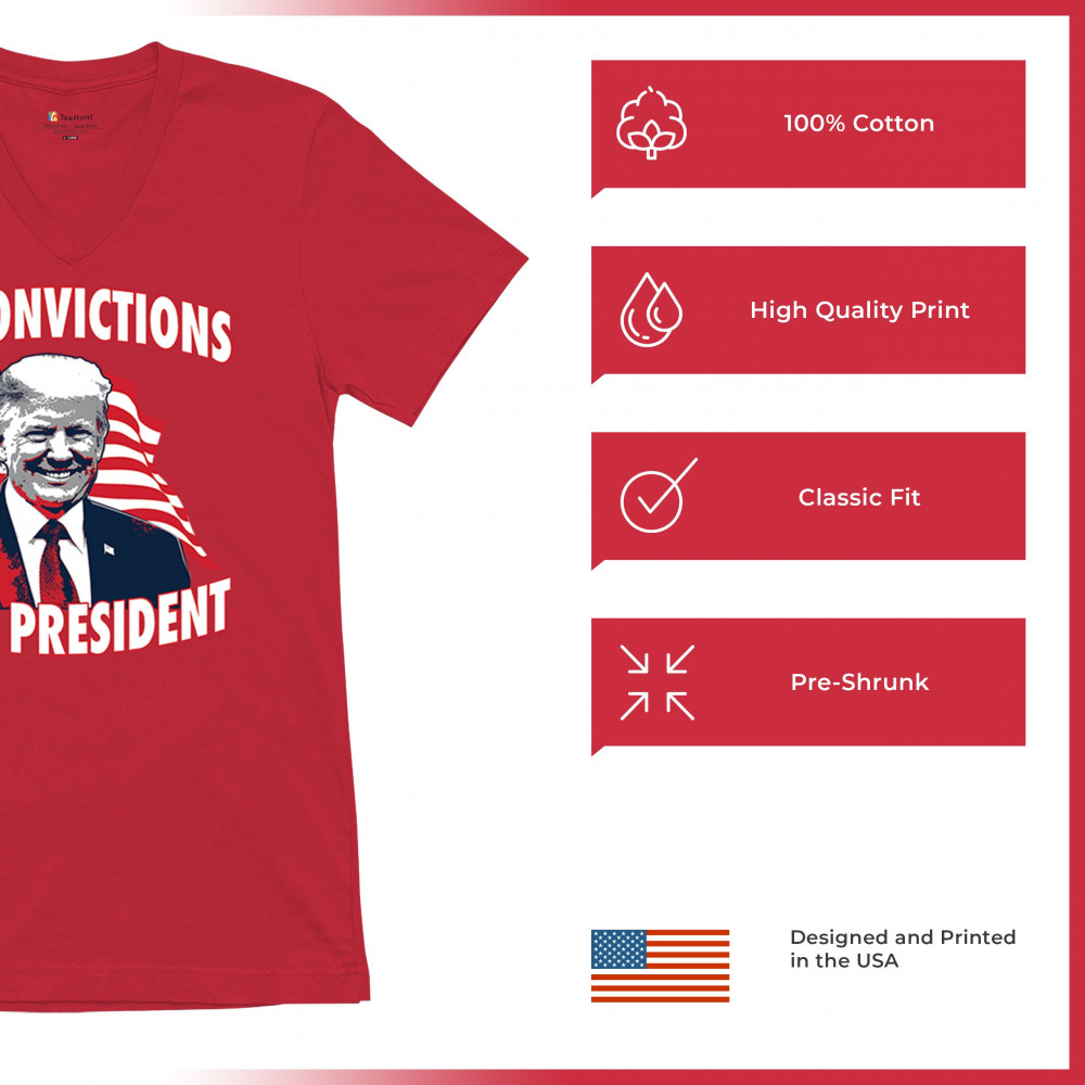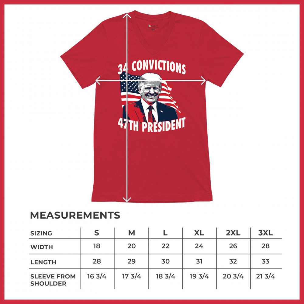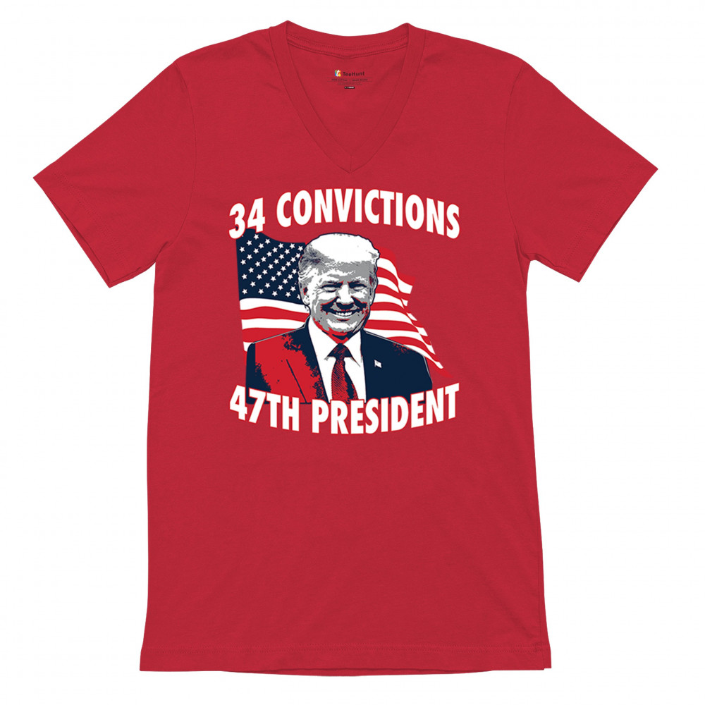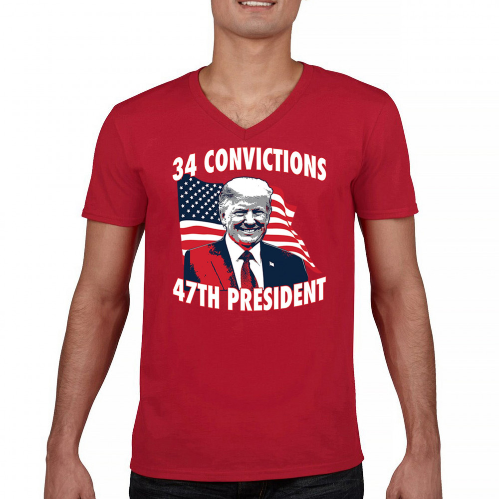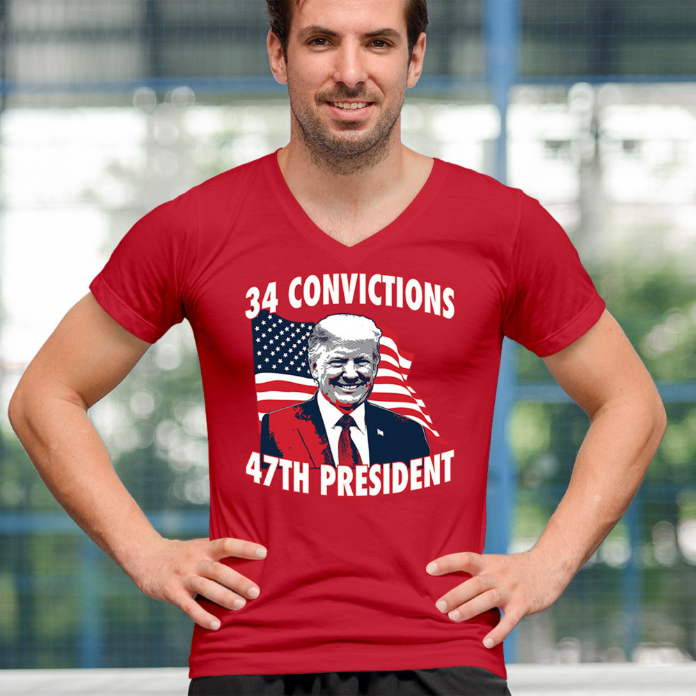 Show your support for Trump's 2024 campaign with the "34 Convictions, 47th President" design. Perfect for rallies, patriotic events, and conservative gatherings.