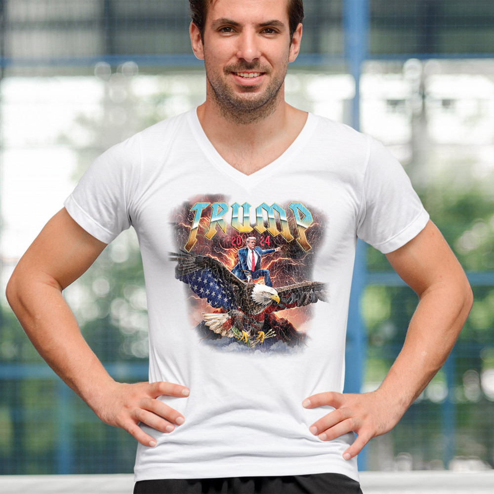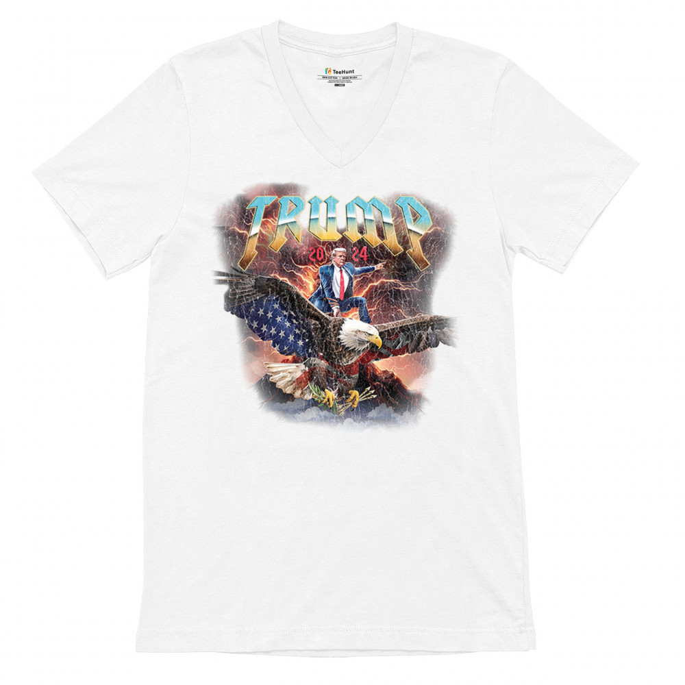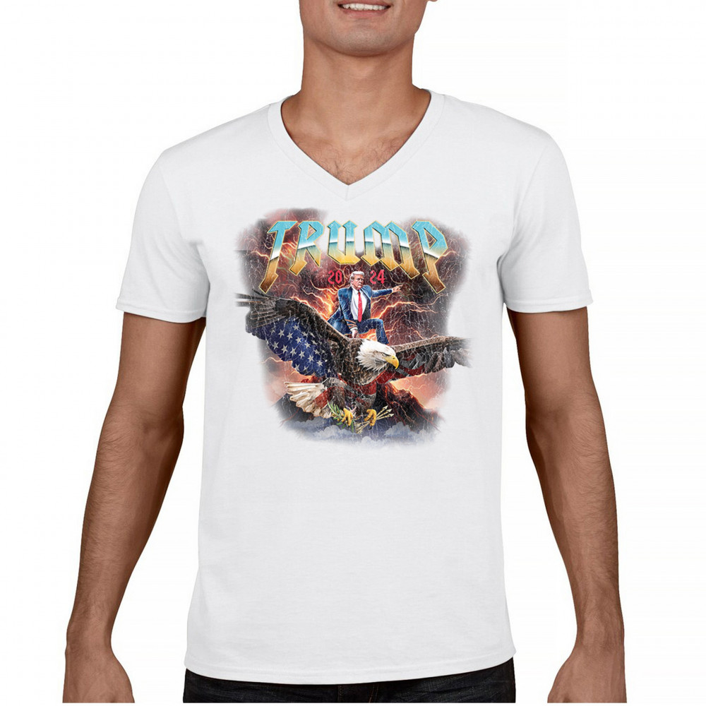 Stand out with our "Trump 2024" design featuring Trump riding an eagle. Perfect for rallies and patriotic events. Show your support with pride and confidence.