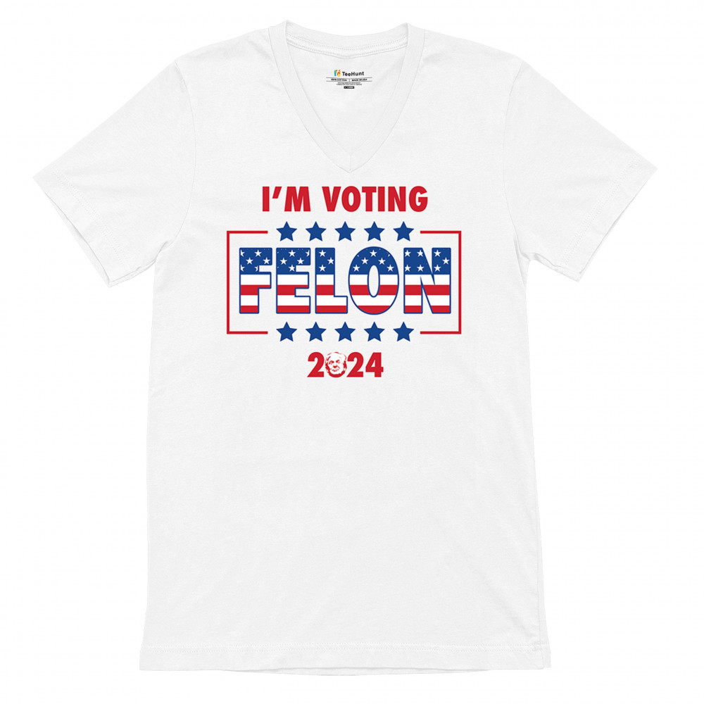 Show your support with the "I'm Voting Felon 2024" design, perfect for conservative patriots and Trump supporters. Featuring an American flag motif.
