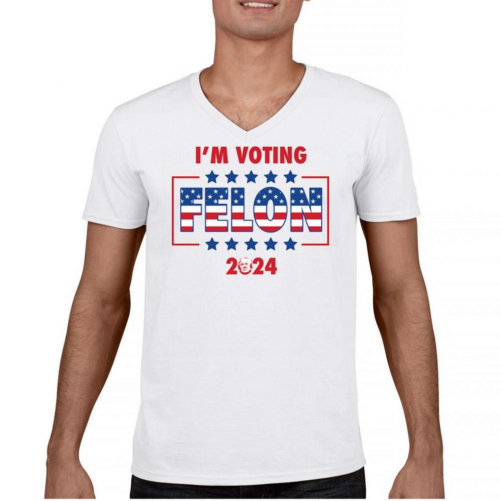 Stand out and express your political beliefs with our "I'm Voting Felon 2024" design. This bold and eye-catching design is perfect for conservative patriots and Trump supporters. Featuring a vibrant American flag motif, it’s ideal for rallies, political events, and daily wear. Show your commitment to America First and your defiance against opposition. This design is a perfect gift for like-minded friends and family who support the same values and are proud to show it.