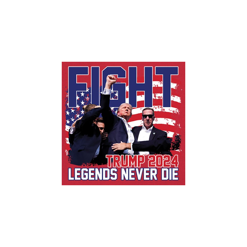 Stand proud and show your support for the Trump 2024 campaign with our exclusive "Fight" design. This striking graphic features Donald Trump alongside the inspiring phrase "Legends Never Die," set against a patriotic American flag backdrop. Ideal for rally events and everyday wear, this design captures the spirit of determination and victory. It’s perfect for those who stand by conservative values and trust in Trump's leadership. Celebrate your patriotism and join fellow supporters in making a bold statement for America's future with this must-have design.