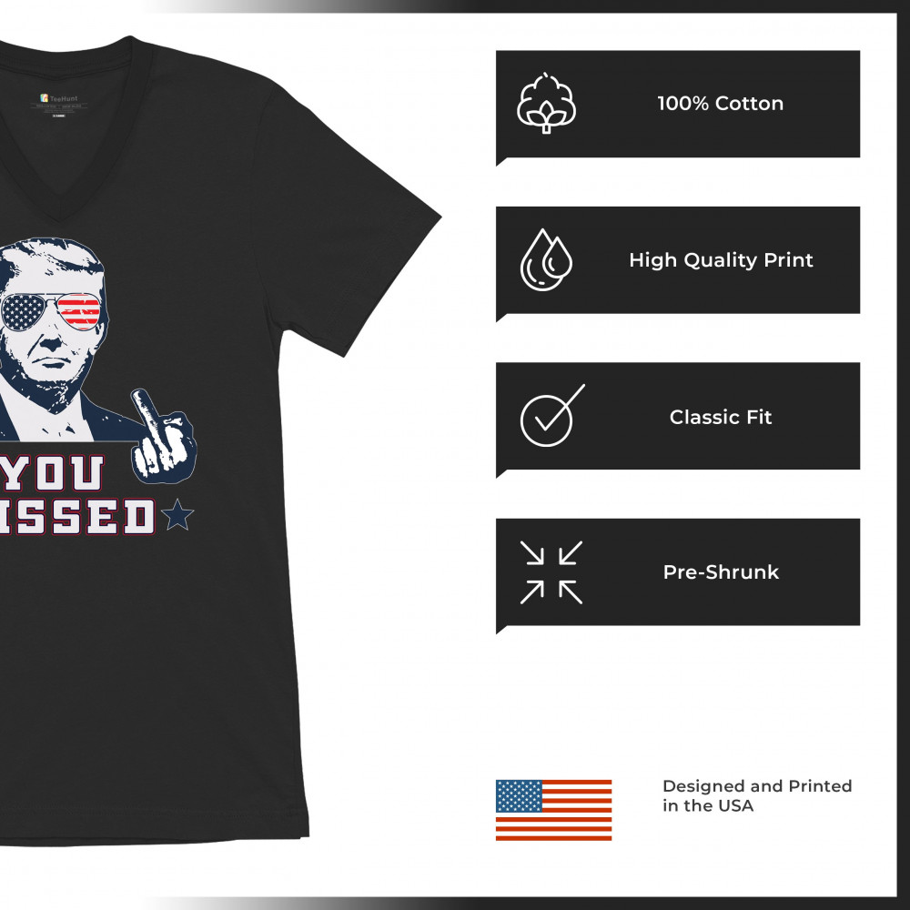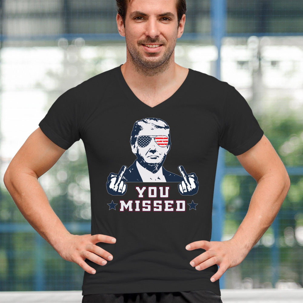 Celebrate Trump's resilience with this bold "You Missed" design. Perfect for rallies and political events. Show your unwavering support for conservative values.