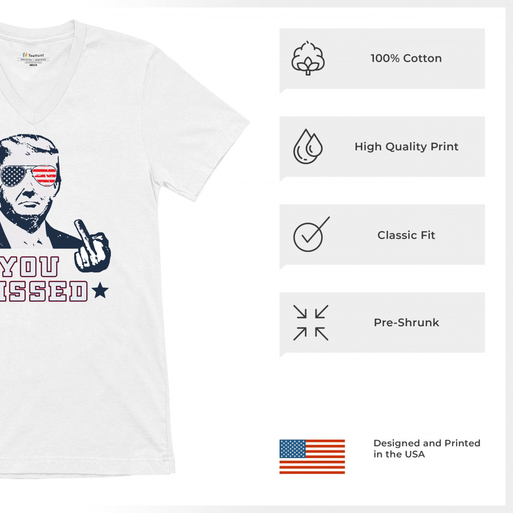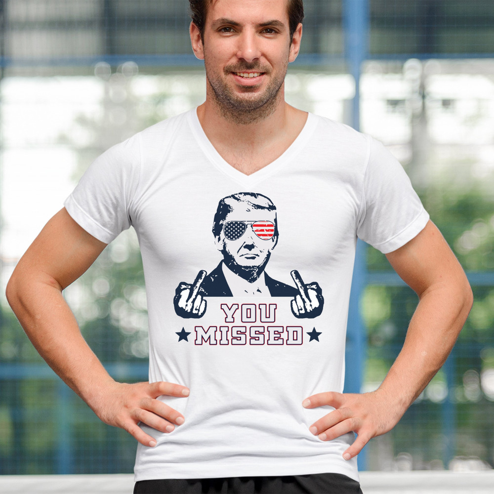 Celebrate Trump's resilience with this bold "You Missed" design. Perfect for rallies and political events. Show your unwavering support for conservative values.