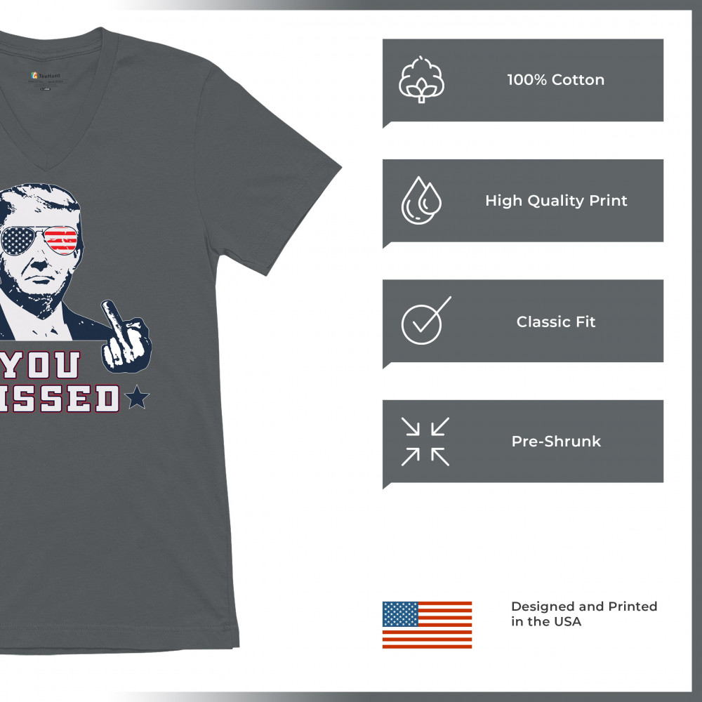 Celebrate Trump's resilience with this bold "You Missed" design. Perfect for rallies and political events. Show your unwavering support for conservative values.