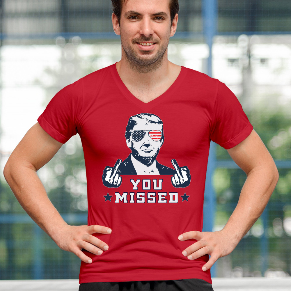 Celebrate Trump's resilience with this bold "You Missed" design. Perfect for rallies and political events. Show your unwavering support for conservative values.