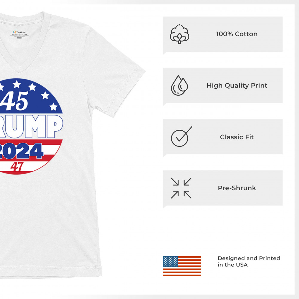 Embrace your conservative pride with this bold "45 TRUMP 2024" design. Representing America First, Republican victory, and the people’s mandate, it’s the perfect way to showcase your support for Donald J. Trump’s historic journey to the 47th presidency. Whether at rallies, political events, or casual outings, this emblem unites Trump supporters in a fight for freedom and patriotism.