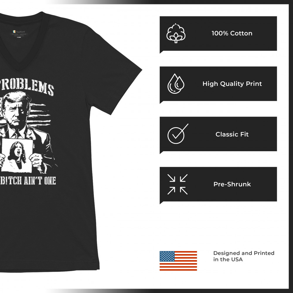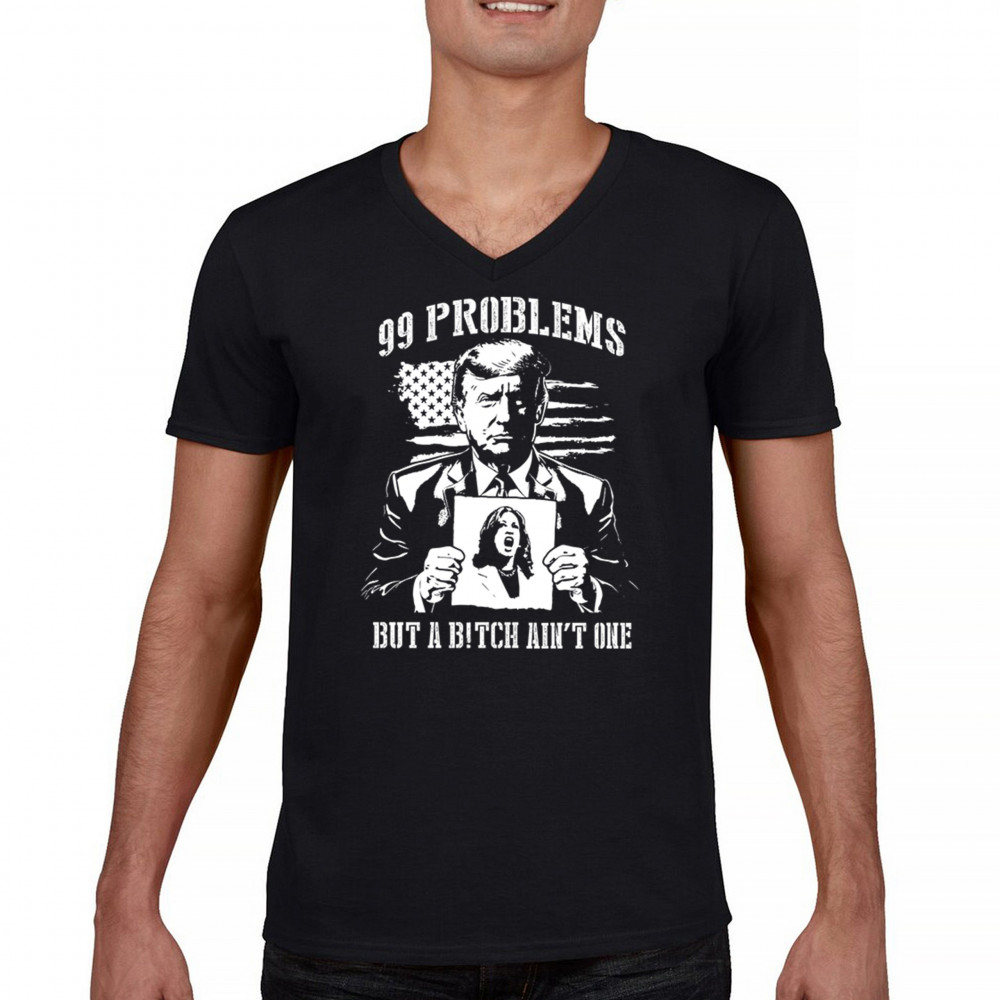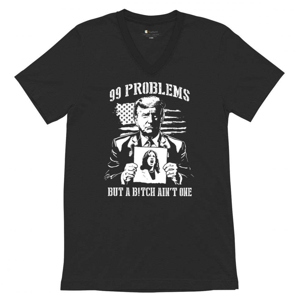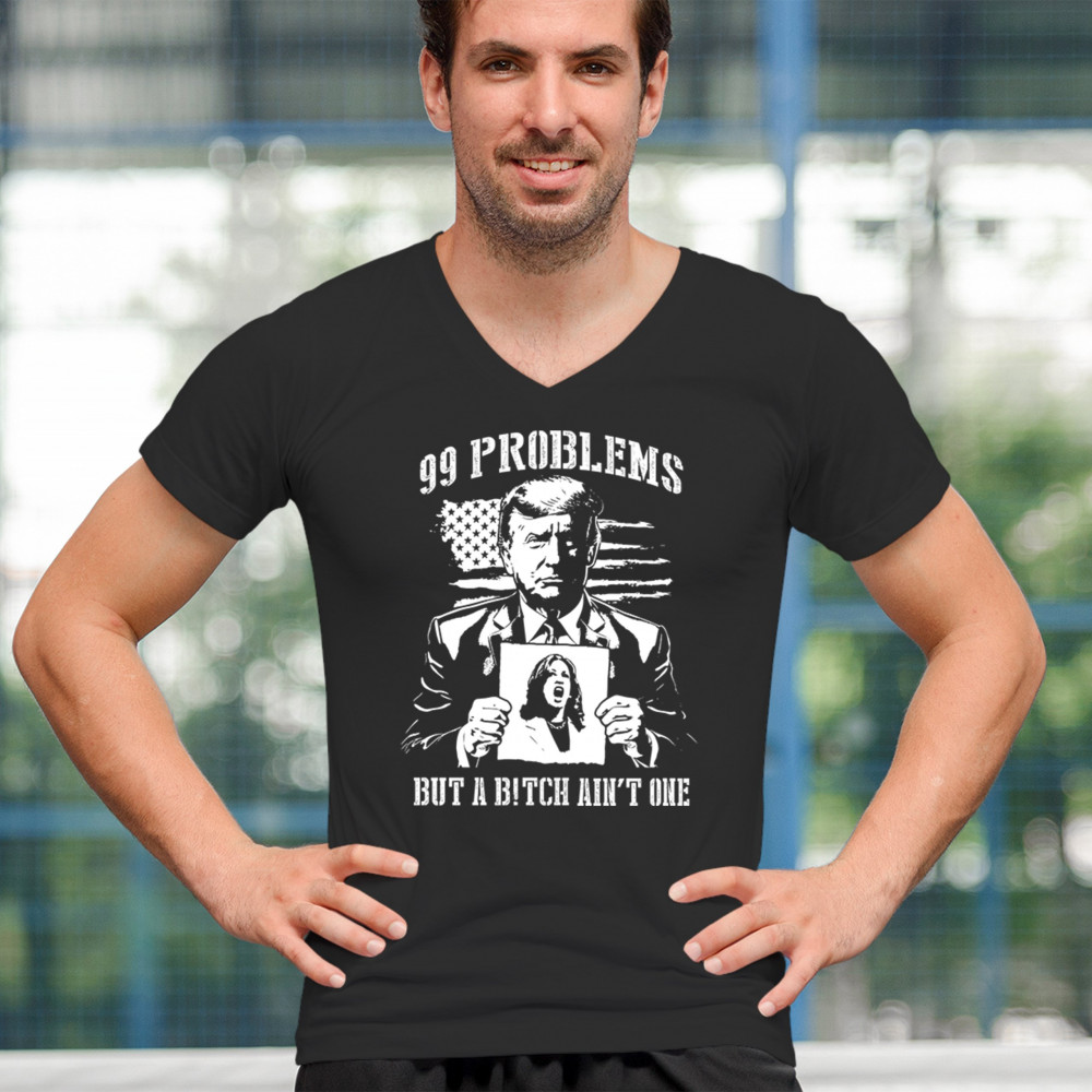 Bold conservative "99 Problems But a B*tch Ain’t One" design featuring Donald J. Trump and an American flag. Perfect for proud Republicans and patriots.