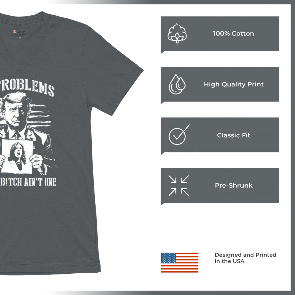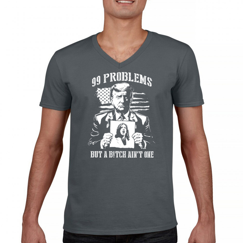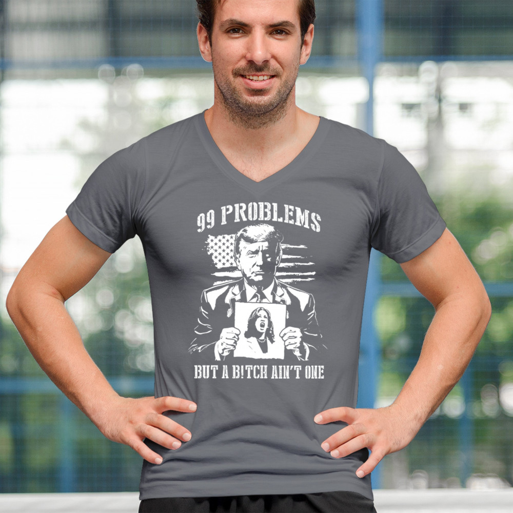 Bold conservative "99 Problems But a B*tch Ain’t One" design featuring Donald J. Trump and an American flag. Perfect for proud Republicans and patriots.