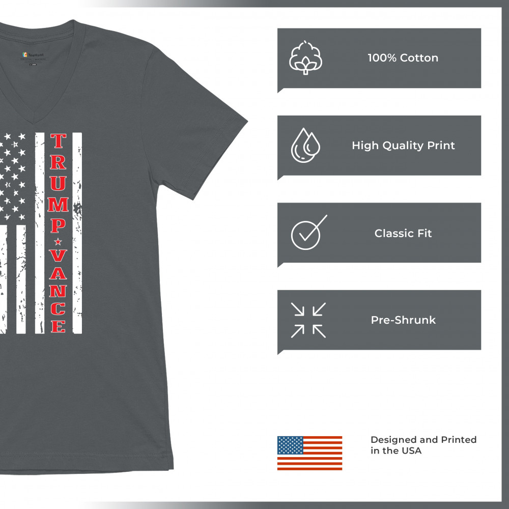 Show your support for Trump Vance 2024 with a bold, rustic American flag design. Perfect for rallies and daily wear. Patriotic and durable.