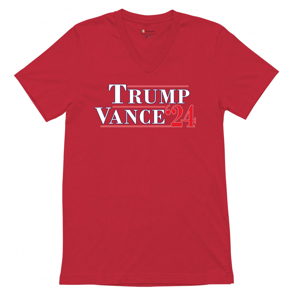 Show your support for Trump Vance 2024 with this patriotic design featuring bold red, white, and blue colors and a flag background. Perfect for rallies and conservative events.