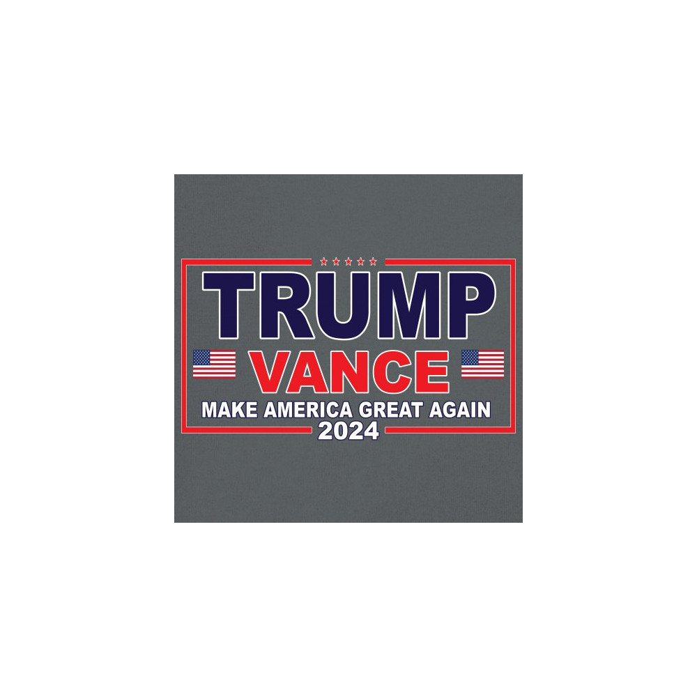 Showcase your support for the Trump-Vance 2024 campaign with this bold patriotic design featuring the American flag and "Make America Great Again" slogan.
