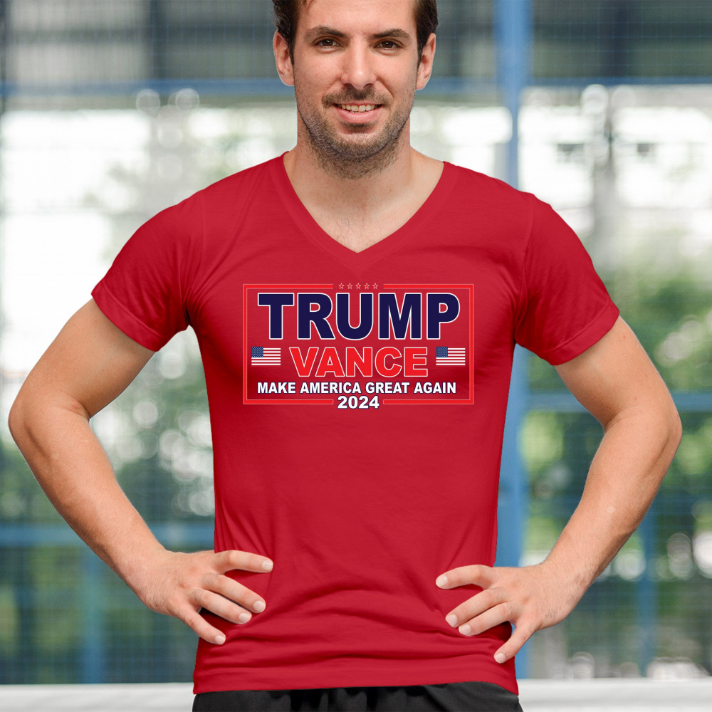 Express your support for the Trump-Vance 2024 campaign with this bold and patriotic design. Highlighting the American flag and the impactful "Make America Great Again" slogan, this design is ideal for those who stand by conservative values. Perfect for attending rallies, political events, or as an everyday statement piece, it symbolizes victory, resilience, and the indomitable American spirit. Show your dedication to the cause and rally fellow supporters with this unique and powerful design. Wear it with pride and make a statement wherever you go.