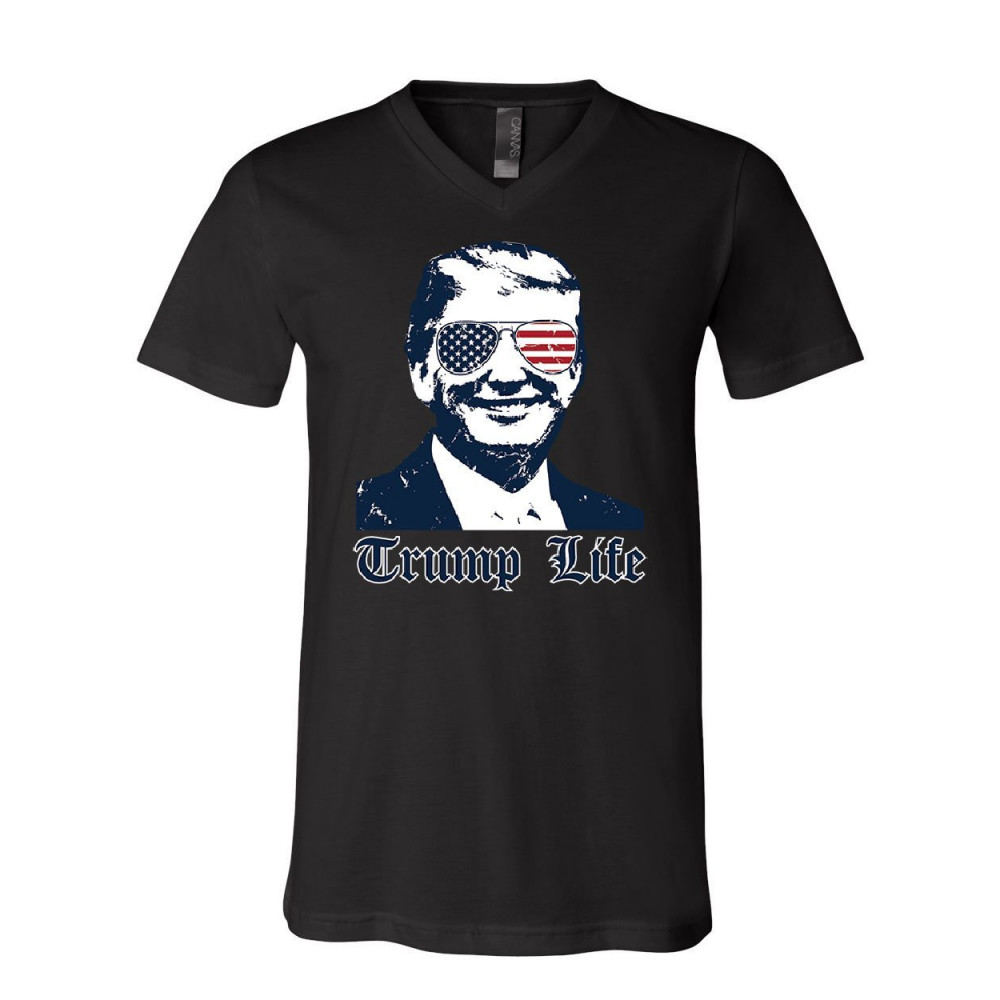 TRUMP LIFE v-neck t-shirt 45th maga keep america great thug life parody tee black