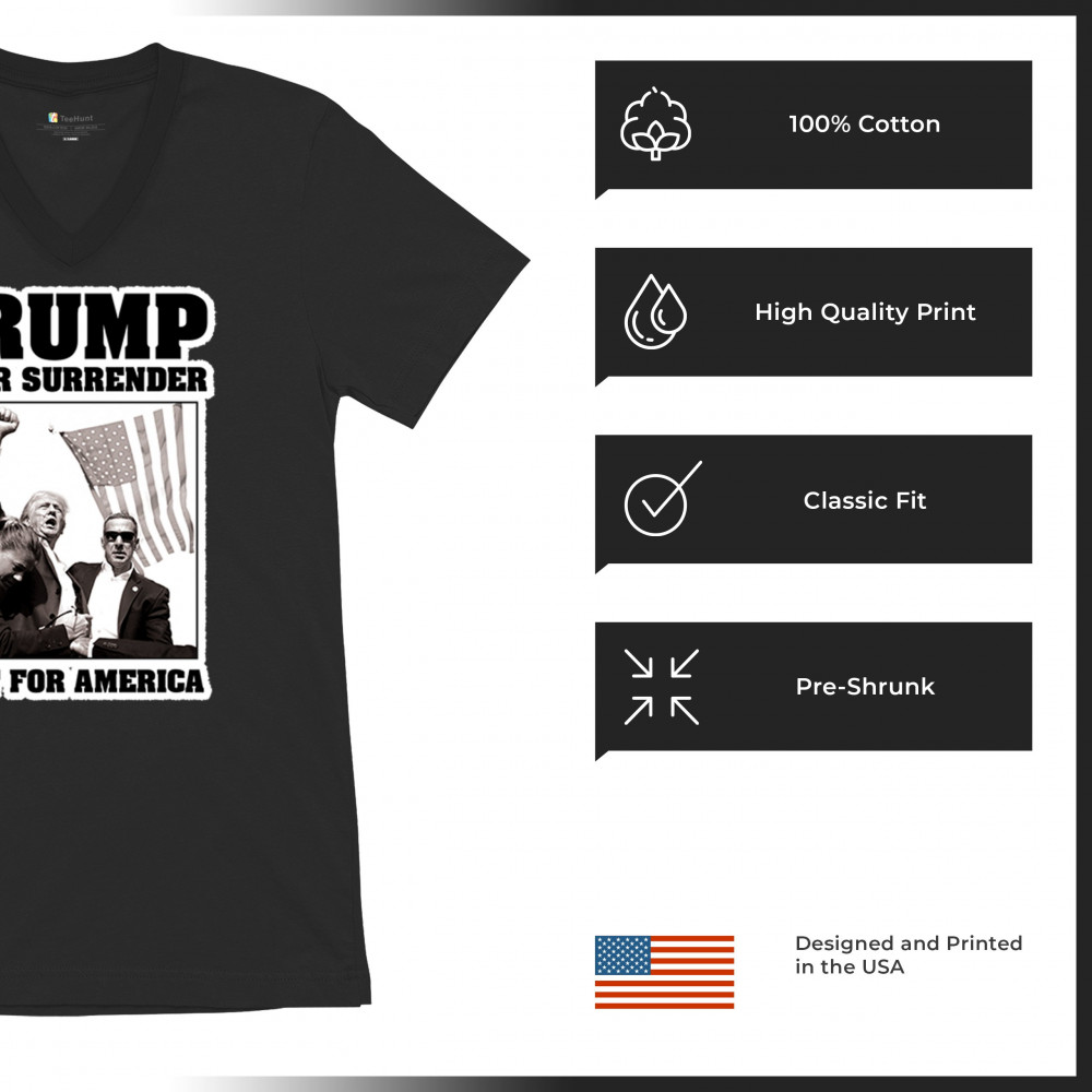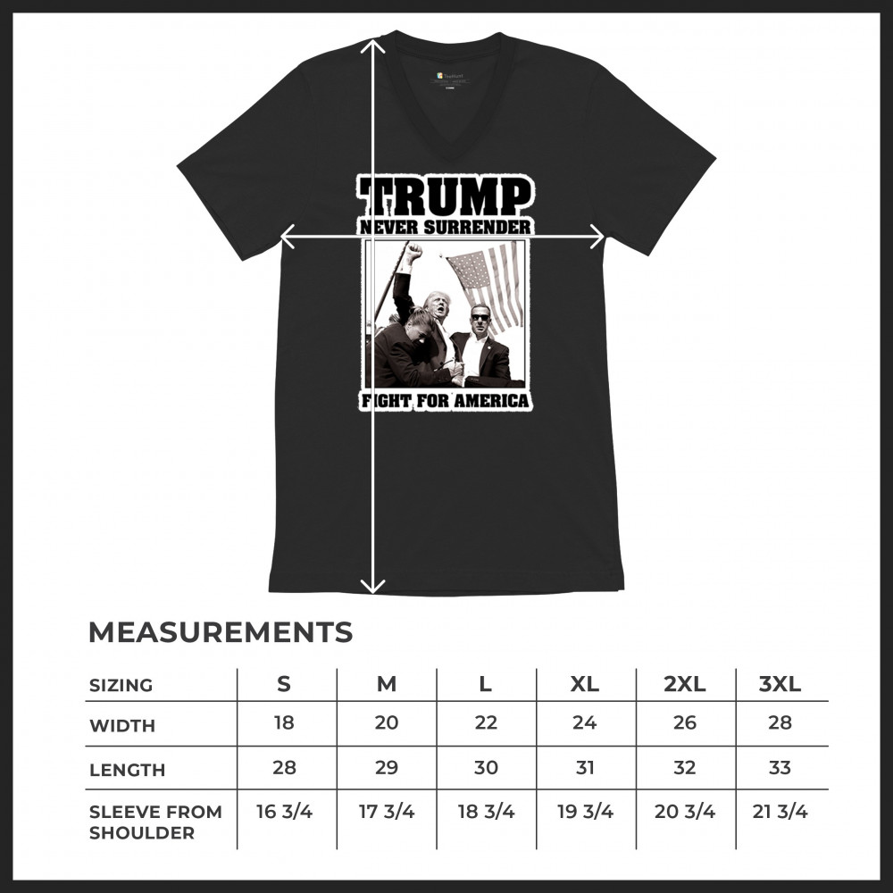 Express your unwavering support with the bold "Trump Never Surrender" design, perfect for rallies and everyday wear. Durable and stylish, show your patriotism proudly.