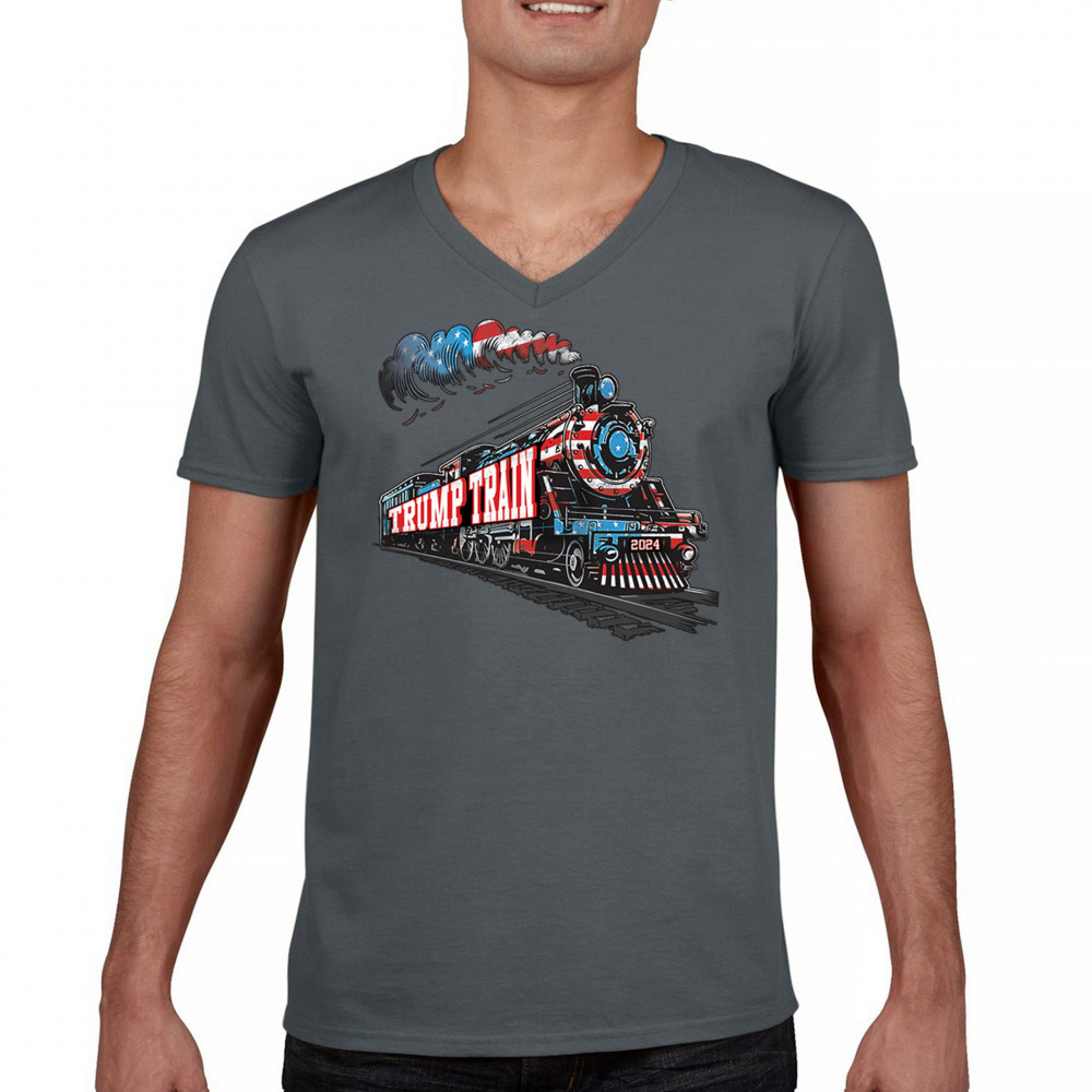 Celebrate the Trump Train with this bold, patriotic design. Featuring a steam engine wrapped in the American flag, this tee is perfect for Trump supporters and conservatives looking to make a statement. Join the Red Wave, fight for victory, and showcase your support for the 47th President. Whether at rallies or casual events, this design represents we the people have spoken and the push for 4 More Years.