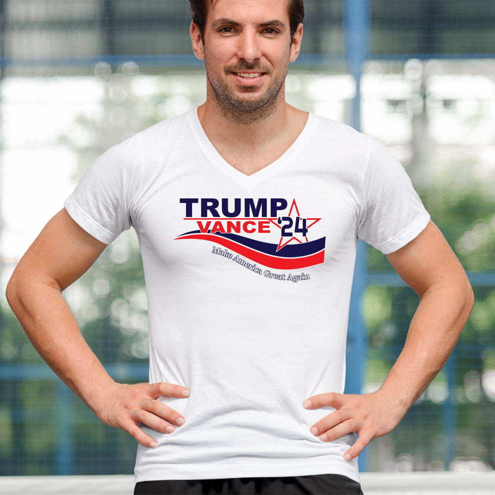 Show your support for Trump-Vance 2024 with this bold design featuring "Make America Great Again." Perfect for rallies and patriotic events.