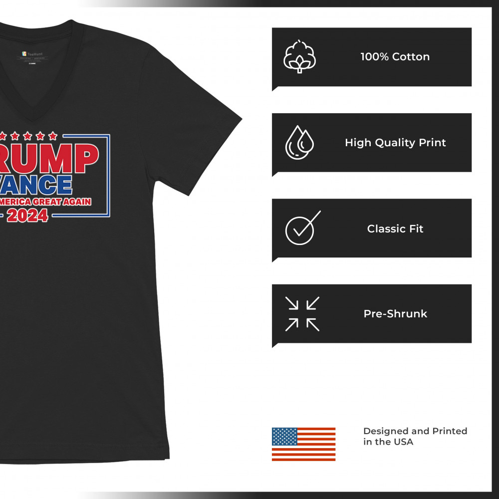 Show your support for Trump-Vance 2024 with this patriotic design featuring the American flag and bold slogan. Perfect for rallies and conservative events.