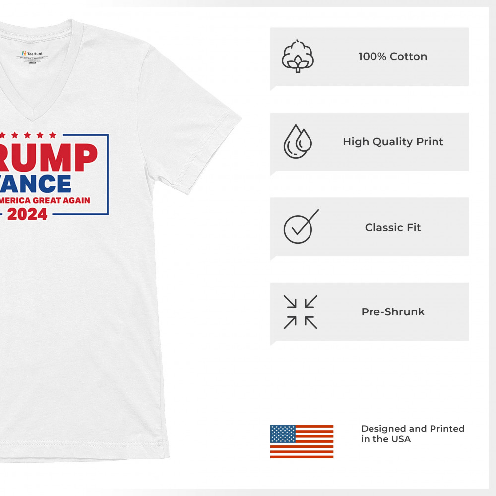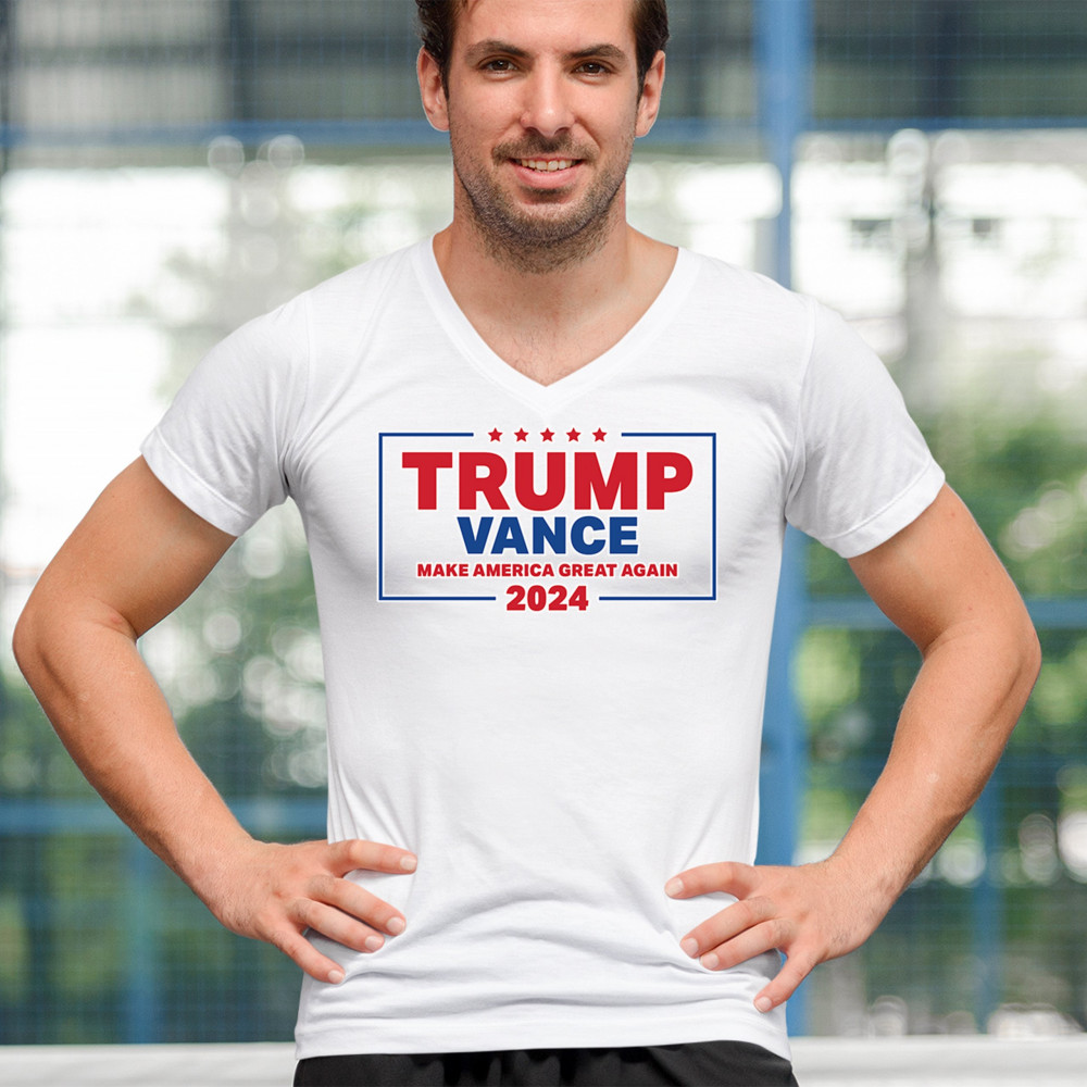 Show your support for Trump-Vance 2024 with this patriotic design featuring the American flag and bold slogan. Perfect for rallies and conservative events.