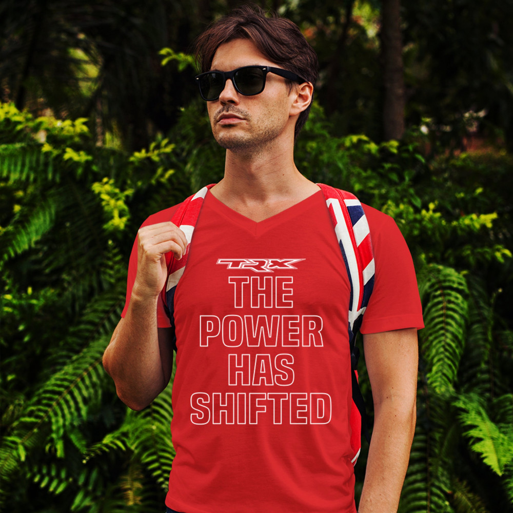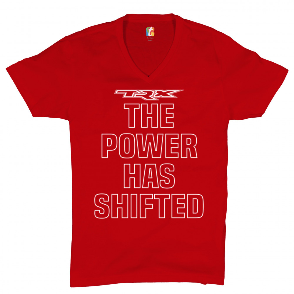 TRX THE POWER HAS SHIFTED v-neck t-shirt off-road ram trucks licensed tee red
