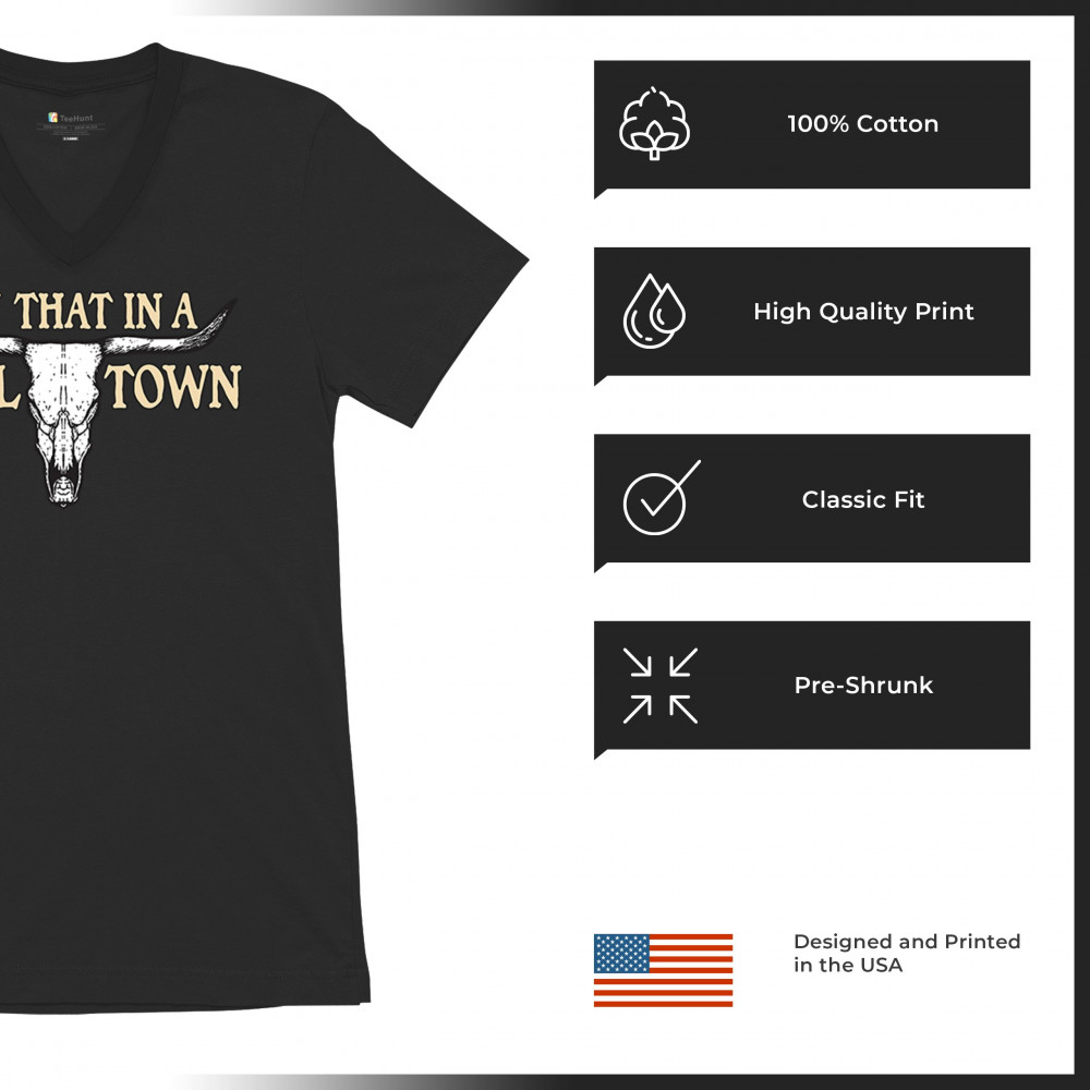 This design boldly proclaims "Try That in a SMALL TOWN," set against the backdrop of a stark cattle skull—a symbol deeply rooted in southern heritage and the undying American spirit. It's a tribute to the small-town sheriffs, the unwritten laws of backbone and duty, and the patriotic fervor that runs through the country's veins. Whether you're a motorcycle enthusiast, a Republican, or simply a connoisseur of all things vintage, this piece is a testament to enduring strength and local pride.