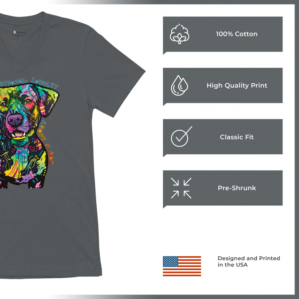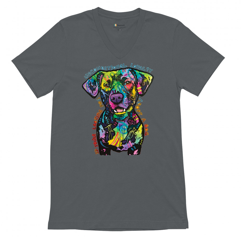 UNCONDITIONAL LOYALTY v-neck t-shirt adopt a dog dean russo pets tee charcoal