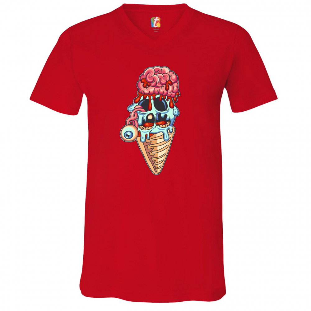 A print featuring an undead ice cream. The ice cream ball looks like a head of a zombie with an eye popping out and hanging and bloodied brains attached on top. A great choice for a person who is into horror movies, haunted houses and freaking people out!