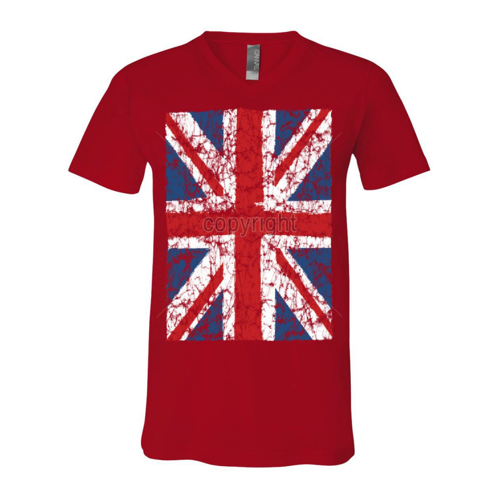 UNION JACK v-neck t-shirt united kingdom distressed british flag tee red