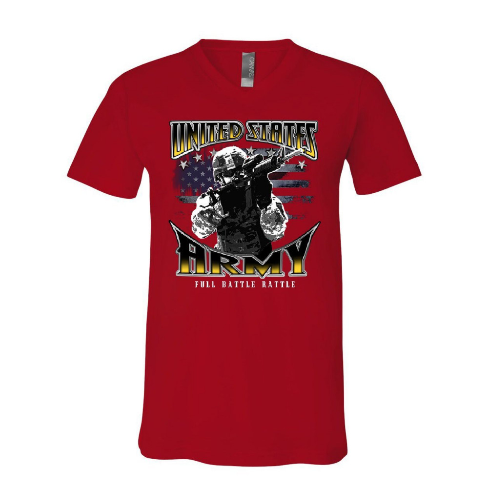 UNITED STATES ARMY FULL BATTLE RATTLE united states army v-neck t-shirt american soldier full battle rattle tee red